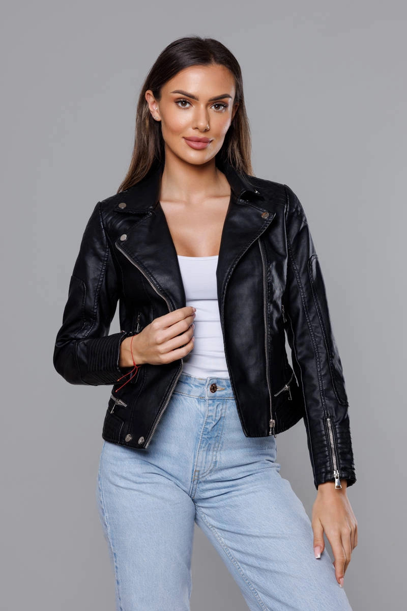 Černá dámská bunda z eko kůže (11Z8030) odstíny černé S (36)