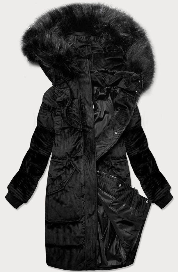 Černá dámská manšestrová zimní bunda s kapucí (7764) odstíny černé XS (34)
