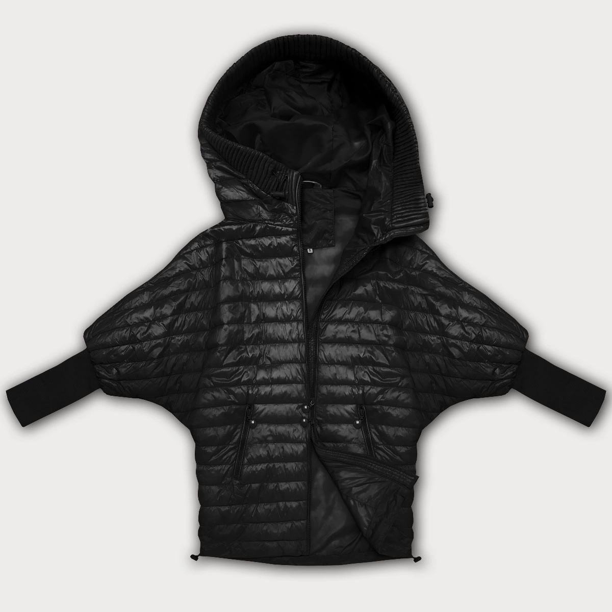 Domů Oblečení a móda Dámské oblečení Dámské bundy a kabáty Černá dámská netopýří bunda Minority (P3-6913-1) odstíny černé M (38)