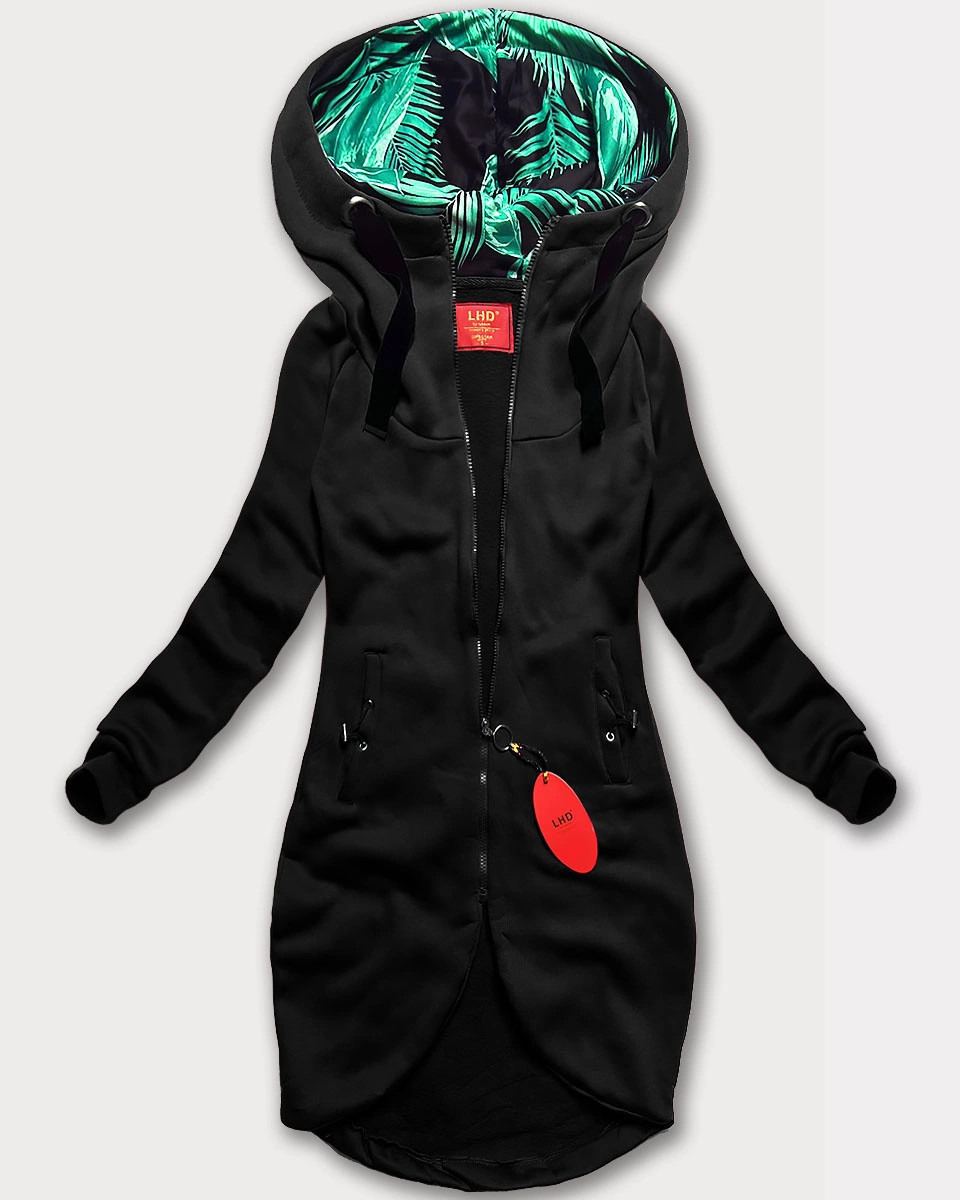 Věnujte prosím pozornost při výběru velikosti dle velikostní tabulky uvedené níže. Velikosti neodpovídají běžně nošené konfekci. Rozepínací mikina s kapucí Mikina je vypasovaná, uvnitř má příjemný polar (fleece), má dvě kapsy a zapíná se zipem. Rukávy jsou olemované stahovacími lemy. Spodní část modelu je asymetrická. Model má délku do poloviny stehen. Složení: 65 % bavlna, 35 % polyester.