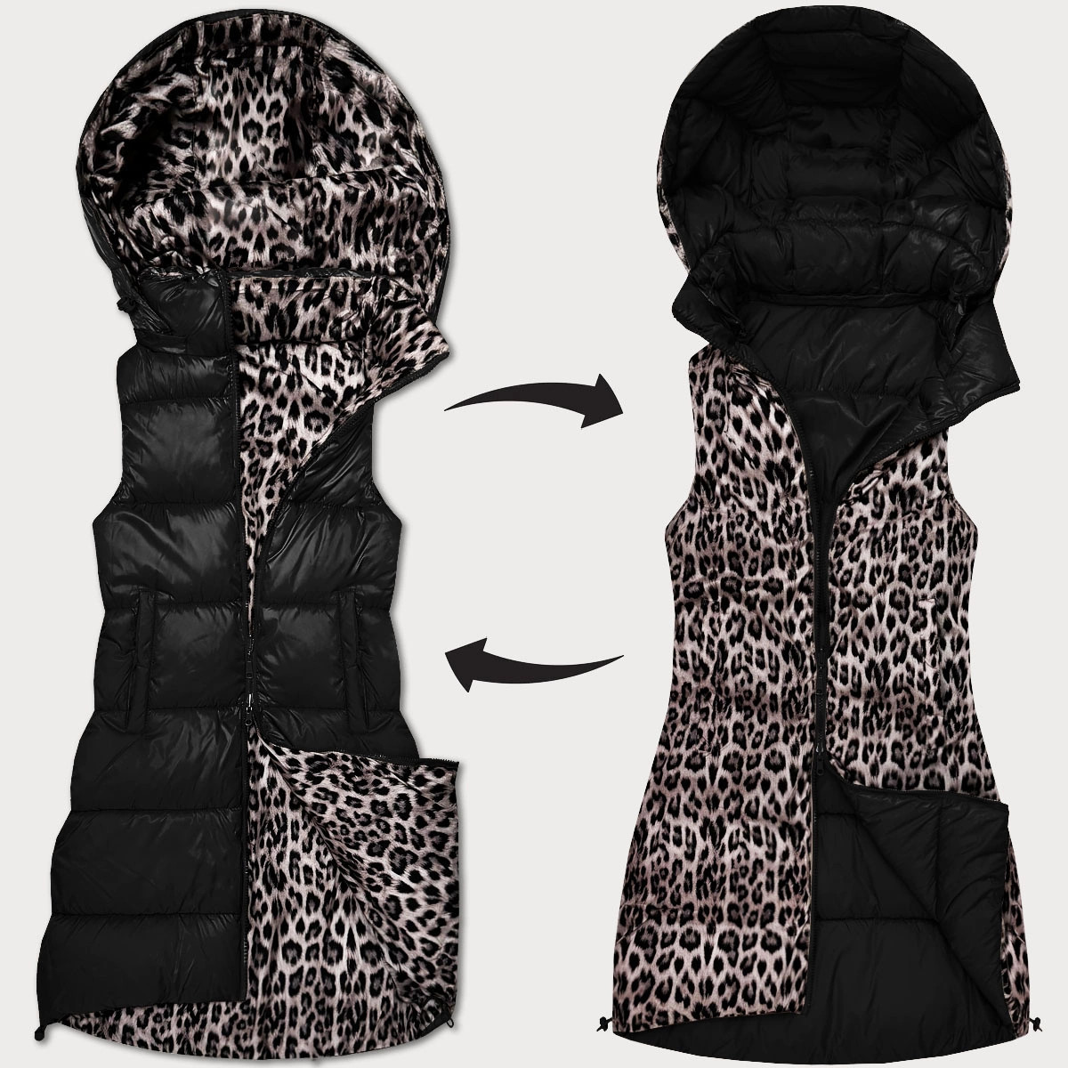 Černá hrubší oboustranná vesta s panteřím vzorem a s odepínací kapucí (T5-2602#-1) odstíny béžové XXL (44)