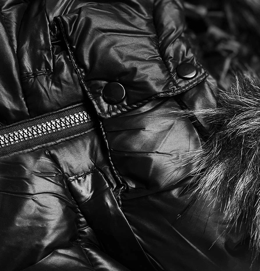 Bunda s kapucí Bunda má jednoduchý střih, je zateplená syntetickou péřovou výplní, má dvě kapsy a zapíná se zipem. Model má kapuci olemovanou kožešinou. Kapuci i kožešinu lemující kapuci je možné odepnout. Bunda má délku k bokům. Složení: vrchní vrstva - 100 % nylon, podšívka - 100 % polyester.
