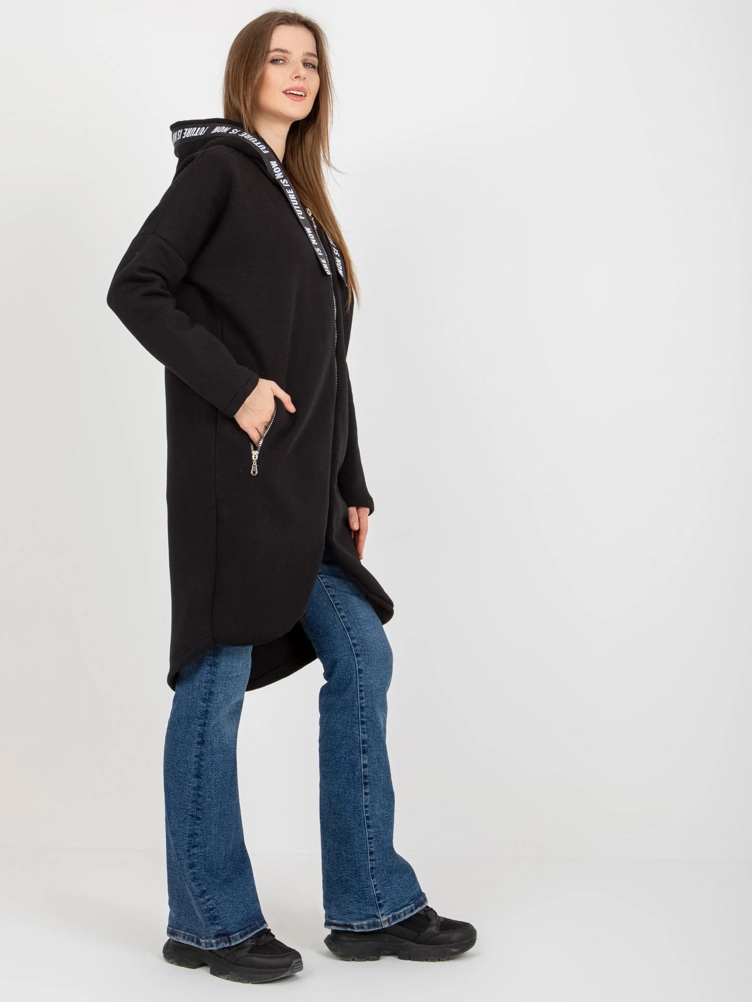 Černá dlouhá mikina s kapucí . kód produktu: RV-BL-6683.00P dominantní vzor: hladký styl: ležérní příležitost: neformální, na procházku, do města Modelka má na sobě velikost S/M. Rozměry modelky: výška 179 cm, poprsí 88 cm, pas 62 cm, boky 89,5 cm. Rozměry mikiny ve velikosti S/M měřené na plocho: šířka v podpaží - 67 cm, délka rukávu - 64 cm, celková délka - 105 cm.Velikost Alt.VýškaObvod hrudníku hrudníkExterní. délka. rukávVnitřní. délka rukávůS/M36/38160-17282-8659-6149-51L/XL40/42164-17891-9663-6553-55
