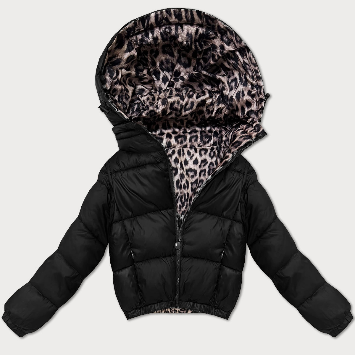 Černá oboustranná dámská krátká bunda s panteřím vzorem Minority (M6-6001-1) odstíny černé L (40)