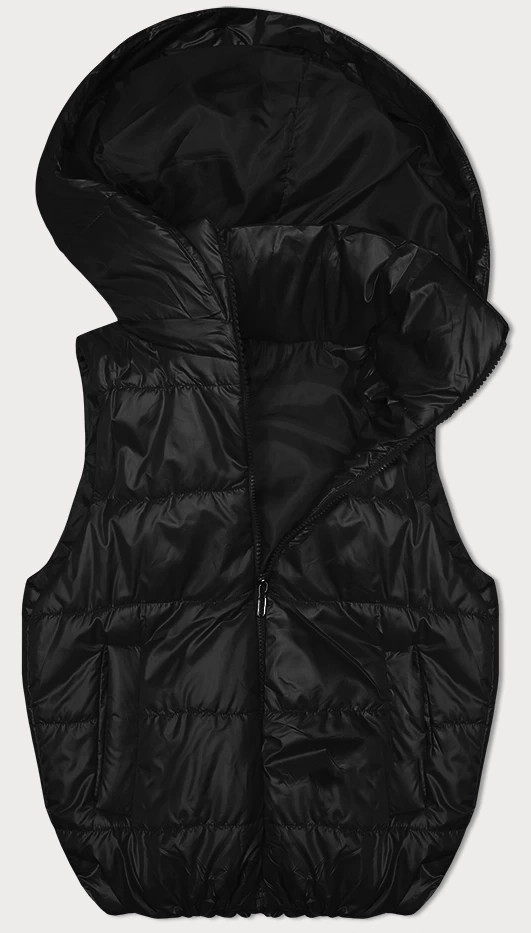 Domů Oblečení a móda Dámské oblečení Dámské vesty Černá péřová vesta s odepínací kapucí (B8247-1) odstíny černé L (40)