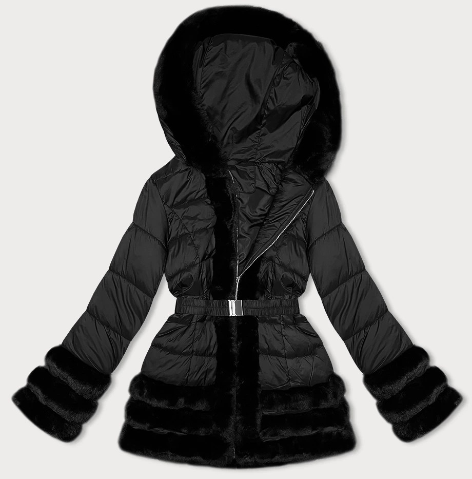 Věnujte prosím pozornost při výběru velikosti dle velikostní tabulky uvedené níže. Velikosti neodpovídají běžně nošené konfekci. Prošívaná bunda s kapucí Bunda je lehce vypasovaná, je zateplená syntetickou péřovou výplní, má opasek s přezkou, dvě kapsy se zapínáním na zip a zapíná se zipem. Model má kapuci, kterou není možné odepnout. Bundu zdobí kožešiny, které není možné odepnout. Model má délku do poloviny stehen. Složení: 100 % polyester.