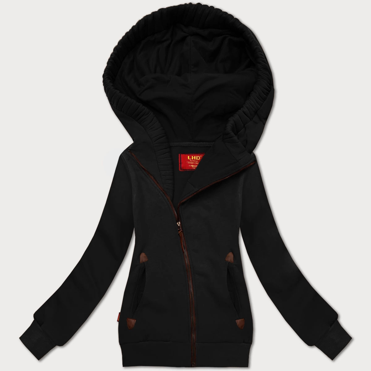 Domů Oblečení a móda Dámské oblečení Dámské mikiny Černá vypasovaná dámská mikina s asymetrickým zipem LHD (AMG-61) odstíny černé L (40)