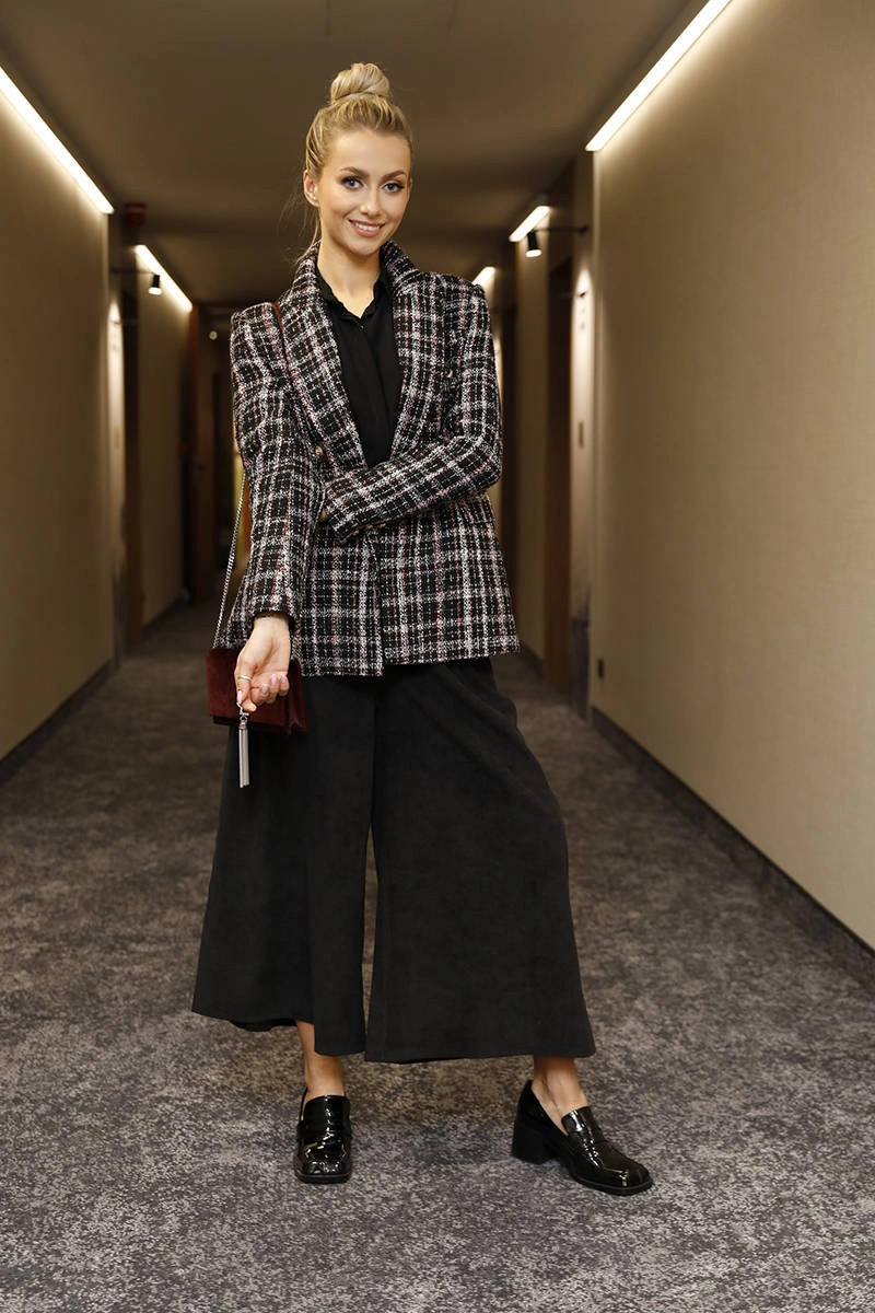 Domů Oblečení a móda Dámské oblečení Dámská saka Černé dvouřadové kárované sako (AG3-1980) odstíny černé S (36)
