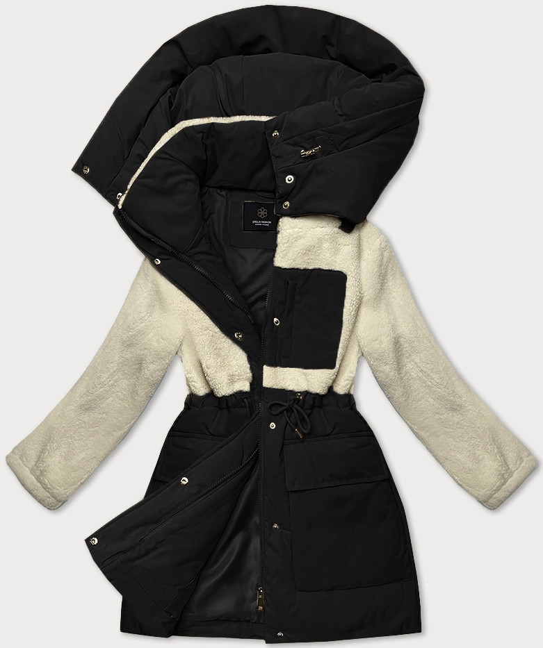 Věnujte prosím pozornost při výběru velikosti dle velikostní tabulky uvedené níže. Velikosti neodpovídají běžně nošené konfekci. Bunda se vsadkami typu beránek Bunda má jednoduchý střih, je zateplená tenkou vrstvou syntetické péřové výplně, má tři kapsy a zapíná se zipem a panelem s patentkami. Model má kapuci, kterou je možné odepnout. V pase modelu je stahující šňůrka. Bunda má délku pod boky. Složení: 100 % polyester.