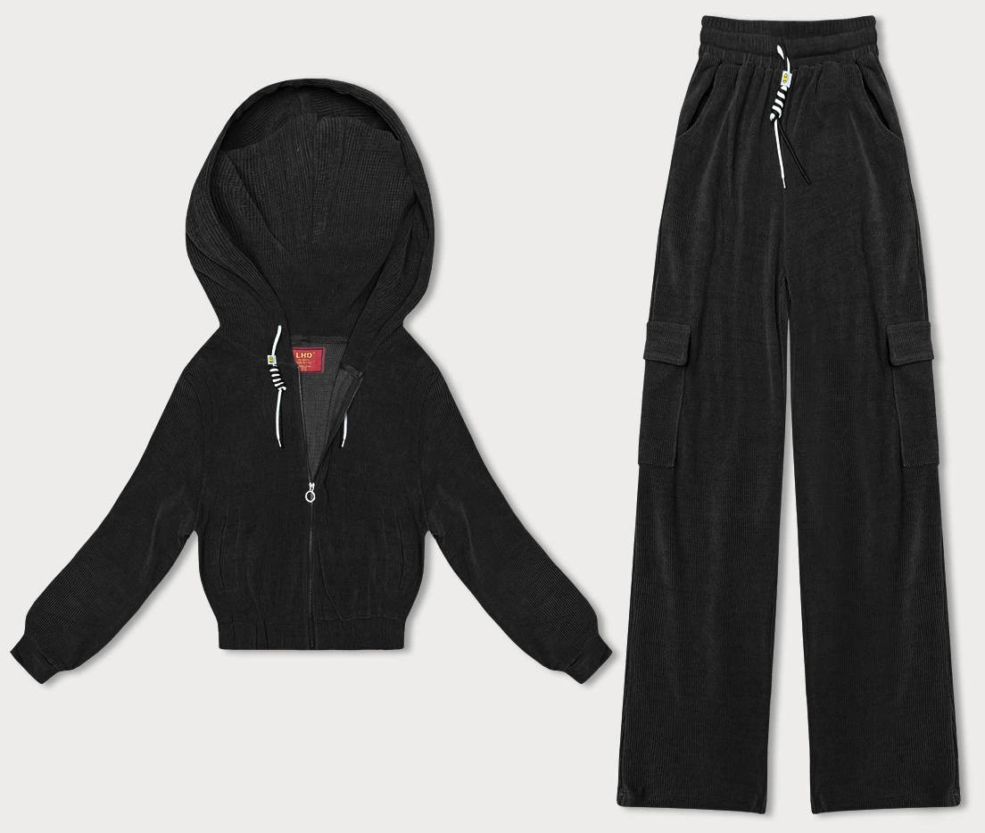 Černý dámský komplet - mikina a kalhoty typu cargo (AMG-322A) odstíny černé XL (42)