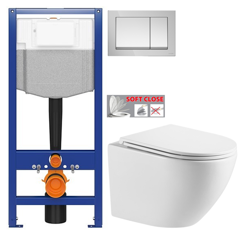 Podomítkový systém SYSTEM 50 MECH (K97-526) Zapuštěný systém pro suchou instalaci. Odolný, rám 50 cm. Zaručuje dlouhodobé a bezproblémové používání. Vlastnosti: • mechanické spouštěcí tlačítko• nastavitelný tlak mycí vody na mycím ventilu• rám z profilů 40 x 40 mm, práškově lakovaná ocel• brzda v nohách rámu• 4-cestné nastavení hloubky výstupního kolena umožňuje• nohy pozinkovaného otočného rámu se 4 montážními polohami• montážní systém QUICK FIX s mikronastavením• velmi tichý plnicí ventil, NF certifikovaný, s mosazným připojovacím hrotem• součástí balení FRESH SYSTEM hygienický SYSTÉM• montáž předního ovládacího tlačítka• připojení 2-bodové přívod vody do nádrže (centrální nahoře, centrální vzadu)• kompatibilní s duálním splachovacím systémem: 2/4L, 3/5L (tovární nastavení) nebo 3/6L• snadné nastavení vnitřních mechanismů • opravitelný úhlový uzavírací ventil• barevné kódování pro usnadnění procesu instalace• široká škála ovládacích tlačítek na výběr Ovládací tlačítko ENTER II k systému AQUA, chrom lesk (K97-509) plastové, dvojčinné chrom lesk rozměr: 22 x 15 cm Ovládací tlačítko k podomítkovému WC modulu se nachází na stěně nad WC mísou a slouží k ovládání splachování vody. Závěsná klozetová mísa LIMNOS v jedné rovině se stěnou, bílá se SLIM sedátkem soft-close (CE-93-001-L) šířka: 37 cm hloubka: 43,5 cm výška: 36 cm WC závěsná mísa LIMNOS /bez oplachového kruhu/. WC mísa je se skrytým uchycením, elegantního vzhledu se zadním odpadem. Díky bez oplachovému kruhu se nehromadí v límci nečistoty a bakterie, jako je tomu u běžných WC.