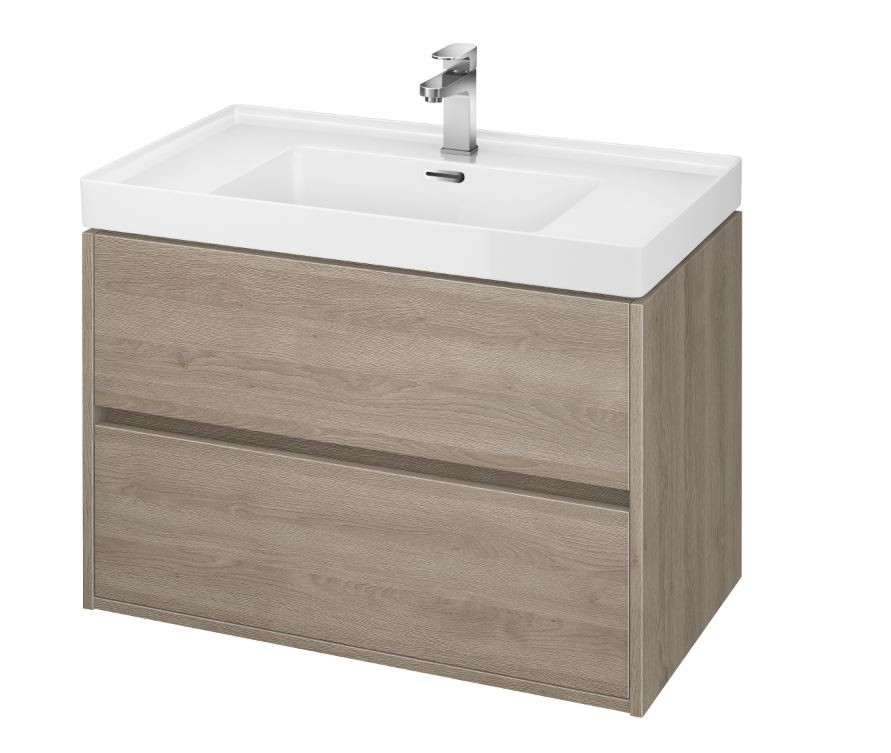 PODROBNOSTI O PRODUKTU Výška: 53,3 cmŠířka: 79,4 cmHloubka: 45 cmINFORMACE Závěsná umyvadlová skříňka CREA 80 se dvěma výsuvnými boxy v provedení dub, vyrobená moderní technologií AQUASAFE /zvýšená odolnost proti vlhkosti/. Skříňka působí elegantním vzhledem díky zapuštění přední části a využití skrytých madel. Zásuvky jsou vybavené pojezdy "HAFELE" s plným výsuvem a tichým uzavíracím systémem, který zvyšuje komfort používání. Kolekce CREA je dodávaná ve třech standardních barvách. Cena je uvedena bez umyvadla a baterie.