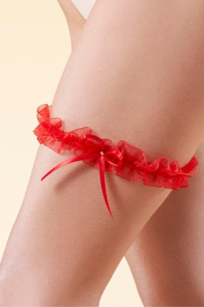 Oblíbený podvazek Odesa je vyroben z červeného mačkaného tylu podšitého ladícími gumičkami. Zdobí ho úzká mašlička a jemná perla. Ve verzi PLUS SIZE byl podvazek prodloužen, aby se vešel na stehna velikosti XL-XXXL. Tento jednoduchý podvazek vám přinese štěstí nejen u maturity! Složení: 100% polyester. Rozměry: max. 90 cm obvod, 45 cmx2.