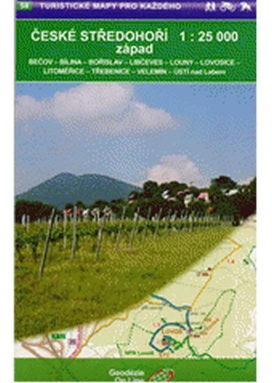 <p>České středohoří - západ : Bečov, Bílina, Bořislav, Libčeves, Louny, Lovosice, Litoměřice, Třebenice, Velemín, Ústí nad Labem : cykloturistická a turistická mapa . Mapy 1:25 000 od společnosti Geodezie On-Line. Podrobná mapa zobrazuje základní polohopisné a výškopisné informace např. silnice, zpevněné a nezpevněné cesty,železnici, sídla a jejich části včetně osad a samot, vodní plochy a toky, ostatní plochy (např. lesy, zahrady a sady, vinice, chmelnice), výškové kóty, vrstevnice po 10 m, ... Mapa dále obsahuje pásové a místní turistické značení, turistické směrovníky, kilometráž; cykloturistické trasy; naučné stezky; turistické lyžařské trasy, sjezdové tratě, lanovky a vleky; jezdecké trasy a samozřejmě zobrazuje pro turisty atraktivní místa - hrady a zámky, rozhledny a místa rozhledu, zříceniny a jiné památky, muzea a galerie, koupaliště, vybrané restaurace a ubytovací zařízení,...</p>