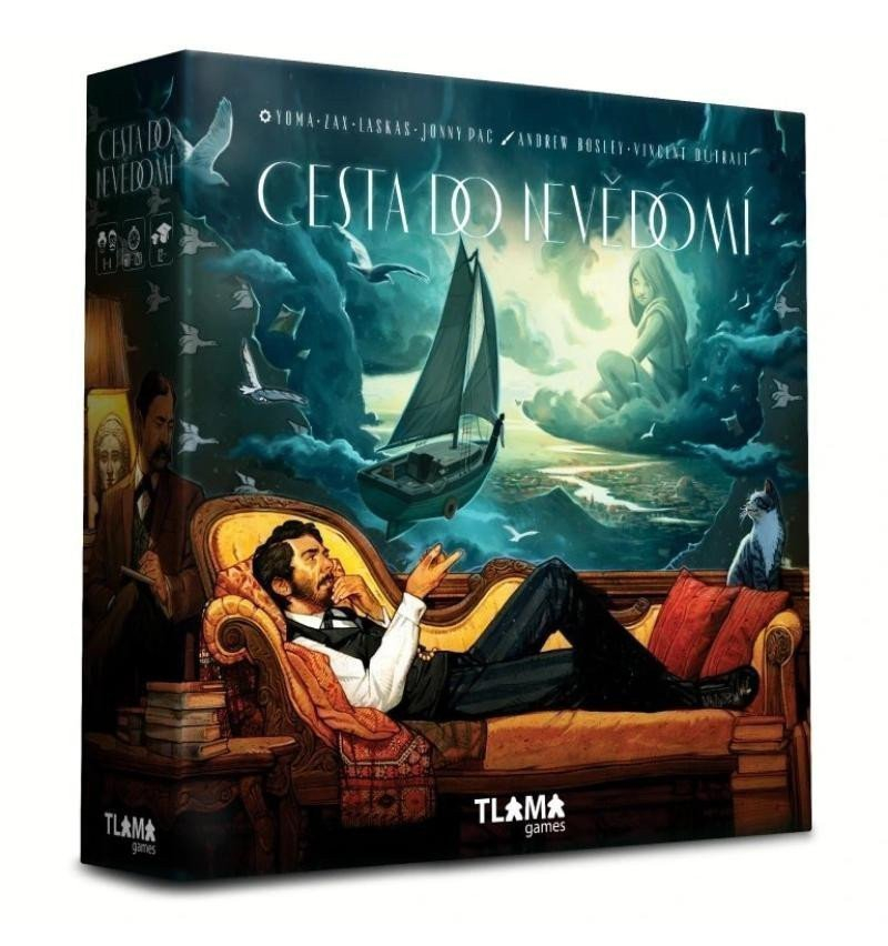 Na počátku 20. století přišel rakouský neurolog Sigmund Freud s revoluční teorií zvanou psychoanalýza neboli studium nevědomé mysli. Teorie se postupně ujala ve Freudově okolí a příznivci psychoanalýzy se každou středu scházeli u Freuda doma, aby diskutovali o psychologii a symbolice snů. Tato skupina - Středeční psychologická společnost – představovala počátek celosvětového psychoanalytického hnutí.Jako člen této společnosti máte za cíl formulovat nové terapeutické techniky, založit ordinaci, rozšířit si klientelu a stát se nejvýznamnějším Freudovým současníkem. Abystetoho dosáhli co nejlépe, musíte sdílet poznatky, diskutovat o nápadech s kolegy a publikovat teorie. A pokud budete chtít zůstat ve formě, budete potřebovat trochu kávy - vlastně spoustu kávy.Cesta do nevědomí je strategická eurohra s mechanikami worker placementa engine building, hned několika rondely a celou řadou kombinujících se efektů.Když jste na tahu, smíte umístit jeden nebo dva žetony nápadů na stůl Středeční společnosti a provést různé akce. Můžete získat nové poznámky na desku hráče, brát či vykládat karty výzkumu nebo se pohybovat po mapě Vídně. Umístění nápadů na stůl také rozhodne o pohybu vašeho kalamáře po rondelu, s jehož pomocí budete aktivovat řady nebo sloupce poznámek na své desce hráče.K léčení klientů a intepretací snů musíte pracovat se zásobou porozumění, kterým budete manipulovat na speciální desce. Postupně se propracujete přes sny s manifestním obsahem až k hlubokým snům s latentním obsahem. A vaše porozumění pomůže klientům dosáhnout katarze. Katarzi představuje odstranění průhledných vrstev melancholie z karet klientů a následné odemčení zvláštních schopností či bodování na konci hry.Jakmile je pověst vaší skupiny psychoanalytiků dostatečně vysoká, nastane konec hry a hráč s nejvyšším počtem bodů se stane vítězem.Hra je určena pro 1-4 hráče od 12 let.Pravidla jsou česky. Herní materiál je jazykově nezávislý. Obsah balení:2 hlavní desky4 desky hráčů4 desky porozumění60 destiček poznámek9 destiček pojednání7 destiček cílů lokací4 desky ordinací24 žetonů čtvrtí20 žetonů bystrých nápadů1 žeton začínajícího hráče48 karet snů24 karet klientů4 karty ordinací36 karet výzkumu29 průhledných karet s vrstvou melancholie1 krabička na vrstvy melancholie4 figurky profesorů1 figurka Freuda4 kalamáře24 žetonů nápadů52 žetonů porozumění5 ukazatelů pověsti4 ukazatele bodů4 ukazatele kávy4 ukazatele krabiček ve tvaru srdce8 ukazatelů terapie1 pravidla4 nápovědy hráčůModuly:1 figurka novináře1 figurka ohňostroje6 překryvných desek lokacíSólo:16 karet stolu9 desek poznámek8 překryvných destiček klientů1 překryvná destička kalamáře1 směrovka1 pravidla2 přehledové karty
