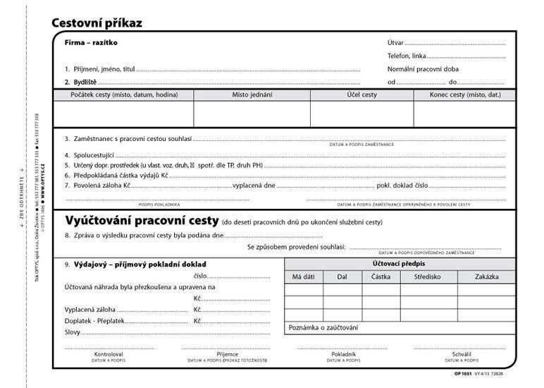 Cestovní příkaz, A5, 100 listů