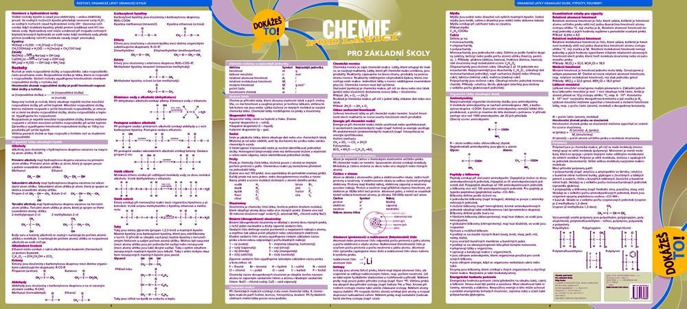 Leporelo s šesti listy plnými souhrnných informací z matematiky, chemie a fyziky pro druhý stupeň základní školy a pro školy střední.Přehledně, stručně a jasně shrnuje nejdůležitější učivo všech ročníků od šesté do deváté třídy. Všechny jevy jsou demonstrovány pomocí definic, zákonů, vzorových příkladů, zobrazení, vzorců, názorných rovnic a výpočtů a opatřeny řadou grafů, přehledových seznamů a komplexních tabulek.S přehlednou grafikou a úpravou této učební pomůcky budou mít žáci celistvý přehled o učivu základní školy vždy při ruce.Atraktivní šestistránková laminovaná, omyvatelná skládačka s otvory pro zavěšení do pořadačů se může stát praktickou pomůckou pro každodenní kontakt se základními přírodovědnými předměty.