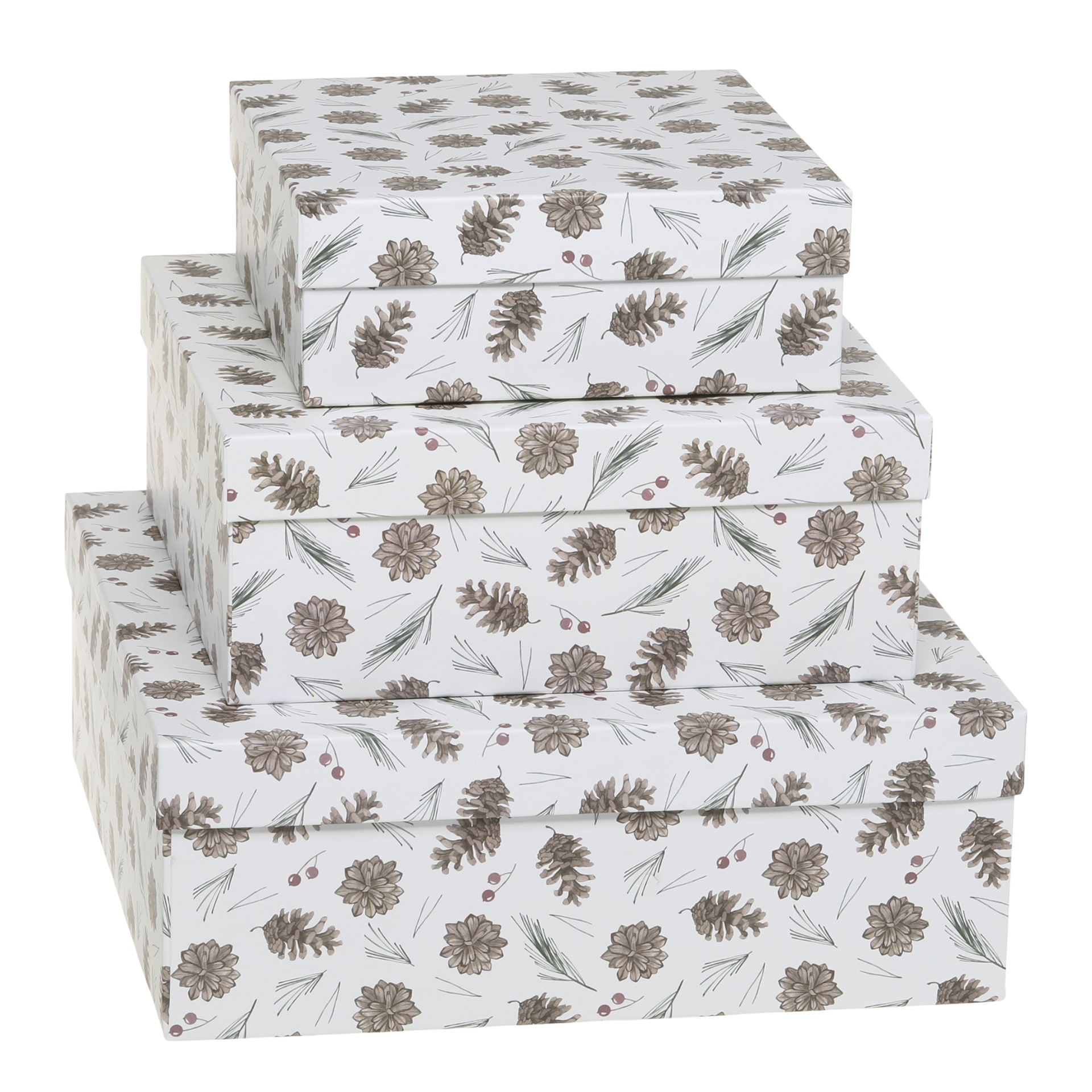 Chic Antique Dárková krabice Pine cones White – set 3 ks, bílá barva, papír. Zabalit vánoční dárky, uložit ozdoby – s tím vám pomůže set vánočních krabic od Chic Antique.