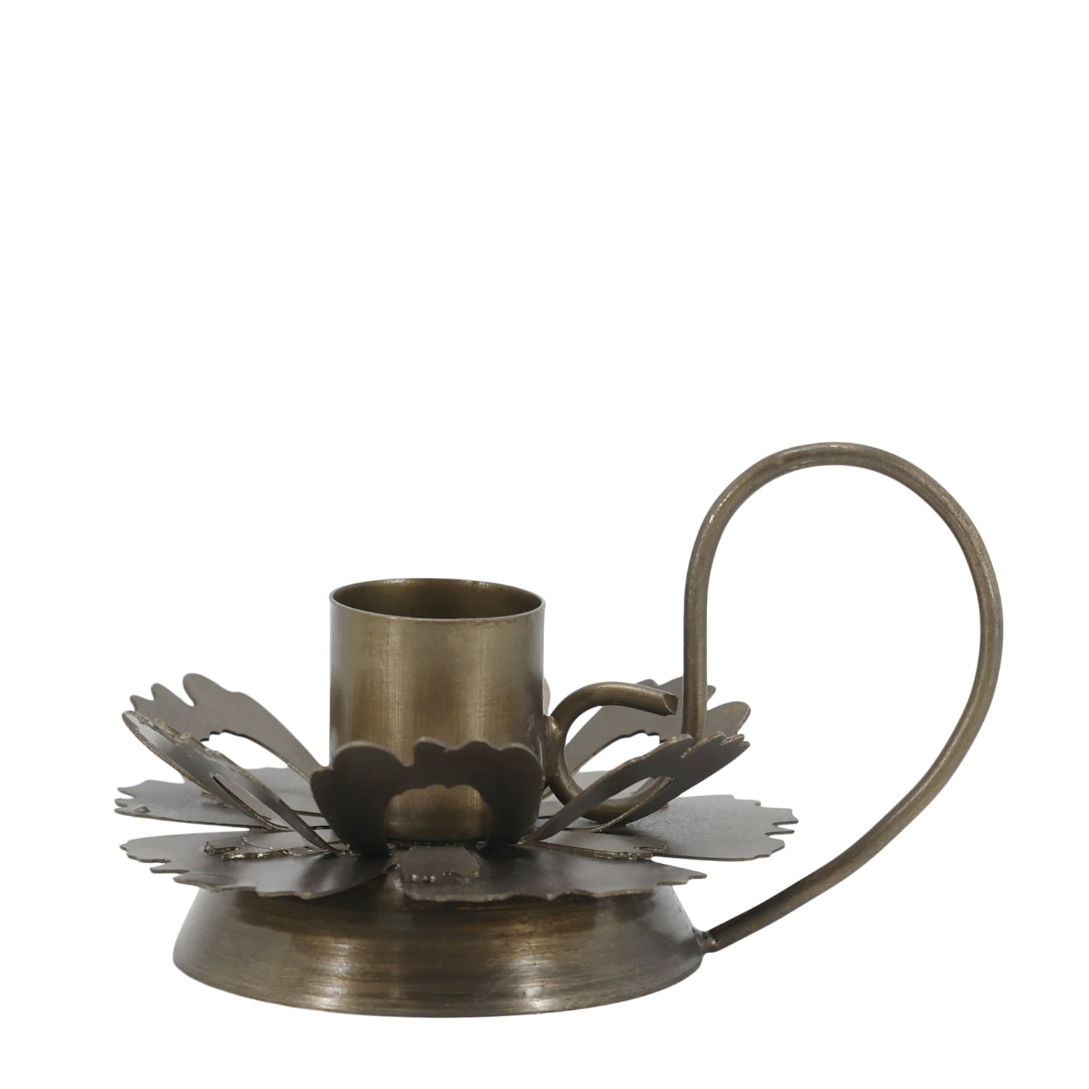 Chic Antique Kovový svícen s ouškem Leaf Pattern, hnědá barva, kov. Svícen od dánské značky Chic Antique z kovu v barvě antické mosazi bude krásným doplňkem na stole, komodě nebo poličce.
