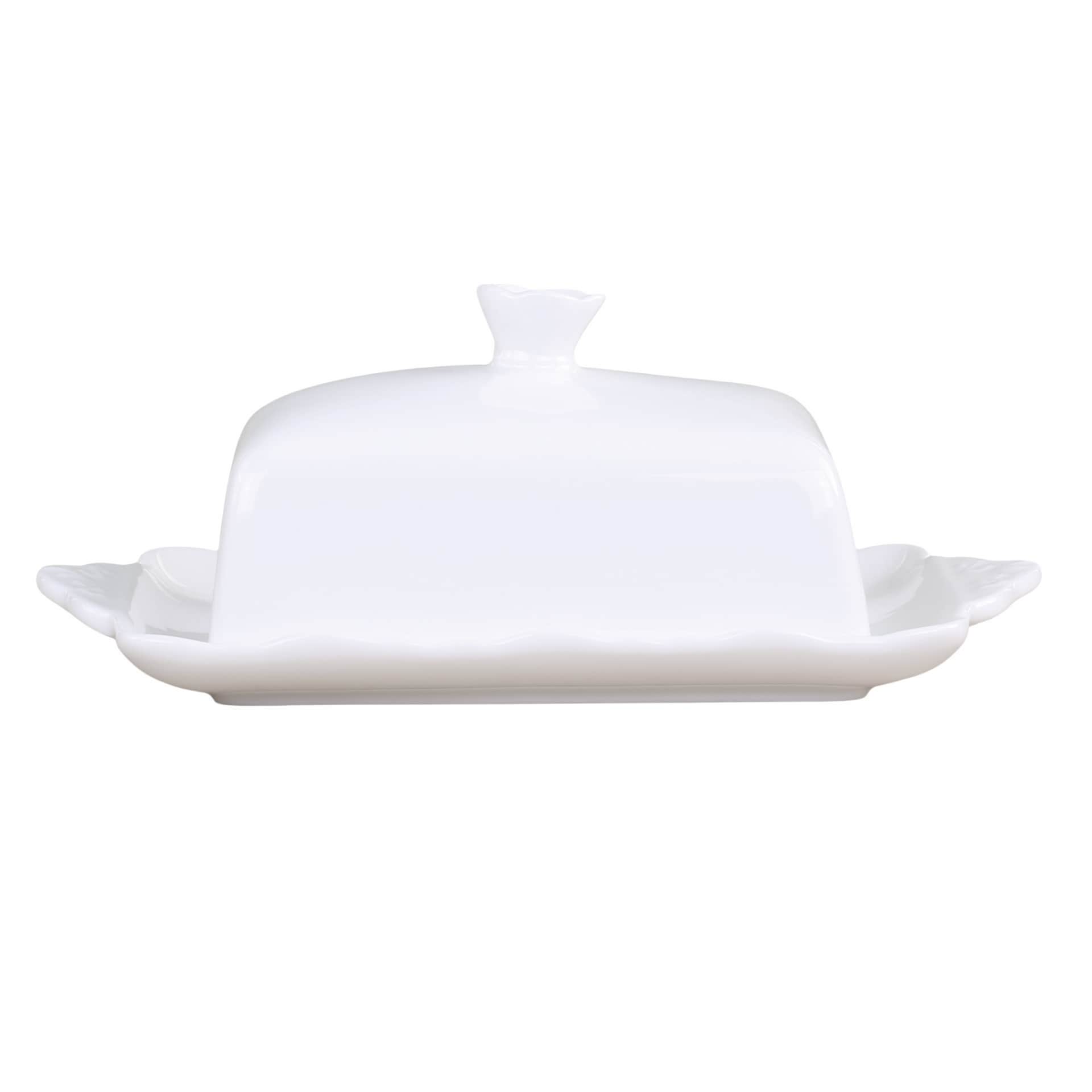 Porcelánová dóza s poklopem na kostku másla s bílou glazurou. výška 8 cm / šířka 20 cm / hloubka 13 cm Vyrobeno z porcelánu.