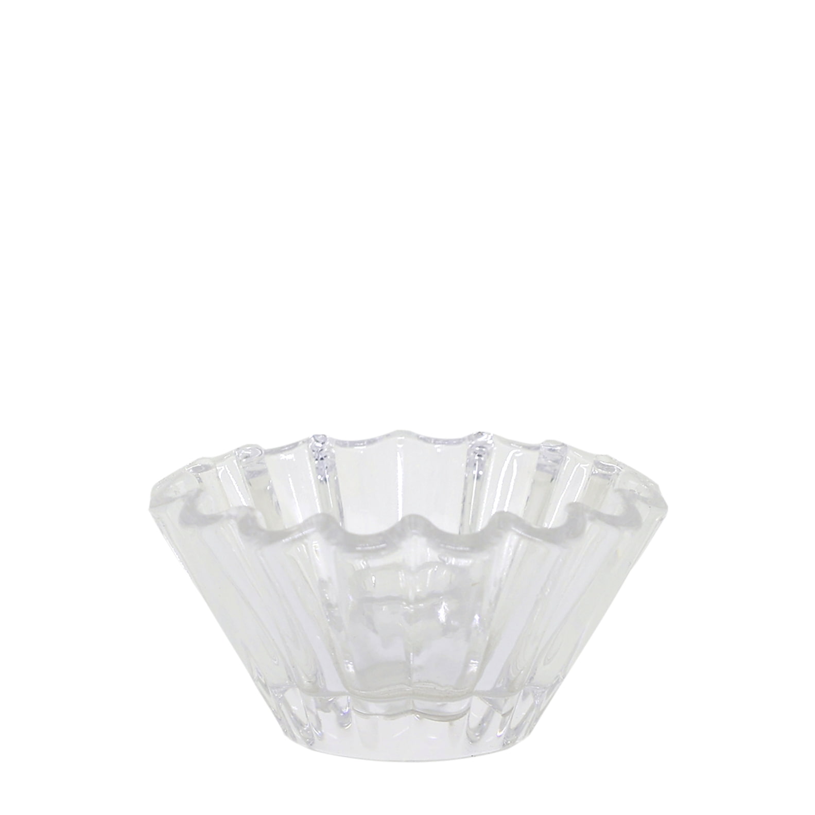 Je vyrobený z čirého skla a bude se tak velmi dobře ladit s jinými dekoracemi a doplňky. Vložte do něj bílou nebo barevnou svíčku a užijte si večerní posezení doma nebo venku. průměr 8,5 cm / výška 4,5 cm Vyrobeno ze skla.