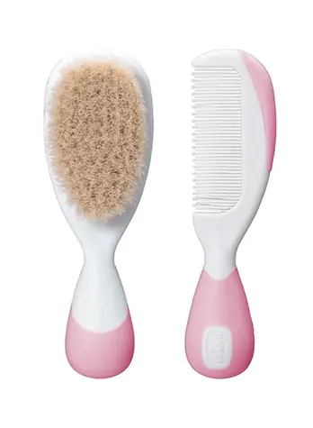Chicco Hřeben a kartáč přírodní růžová / od 0 měsíců