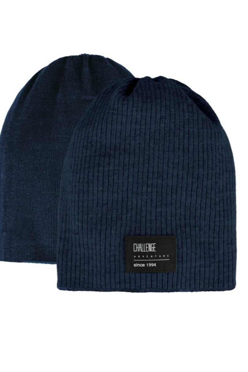 Dvoustranný chlapecký klobouk. Mírně prodloužený model, jedna strana s nášivkou, druhá hladká. .