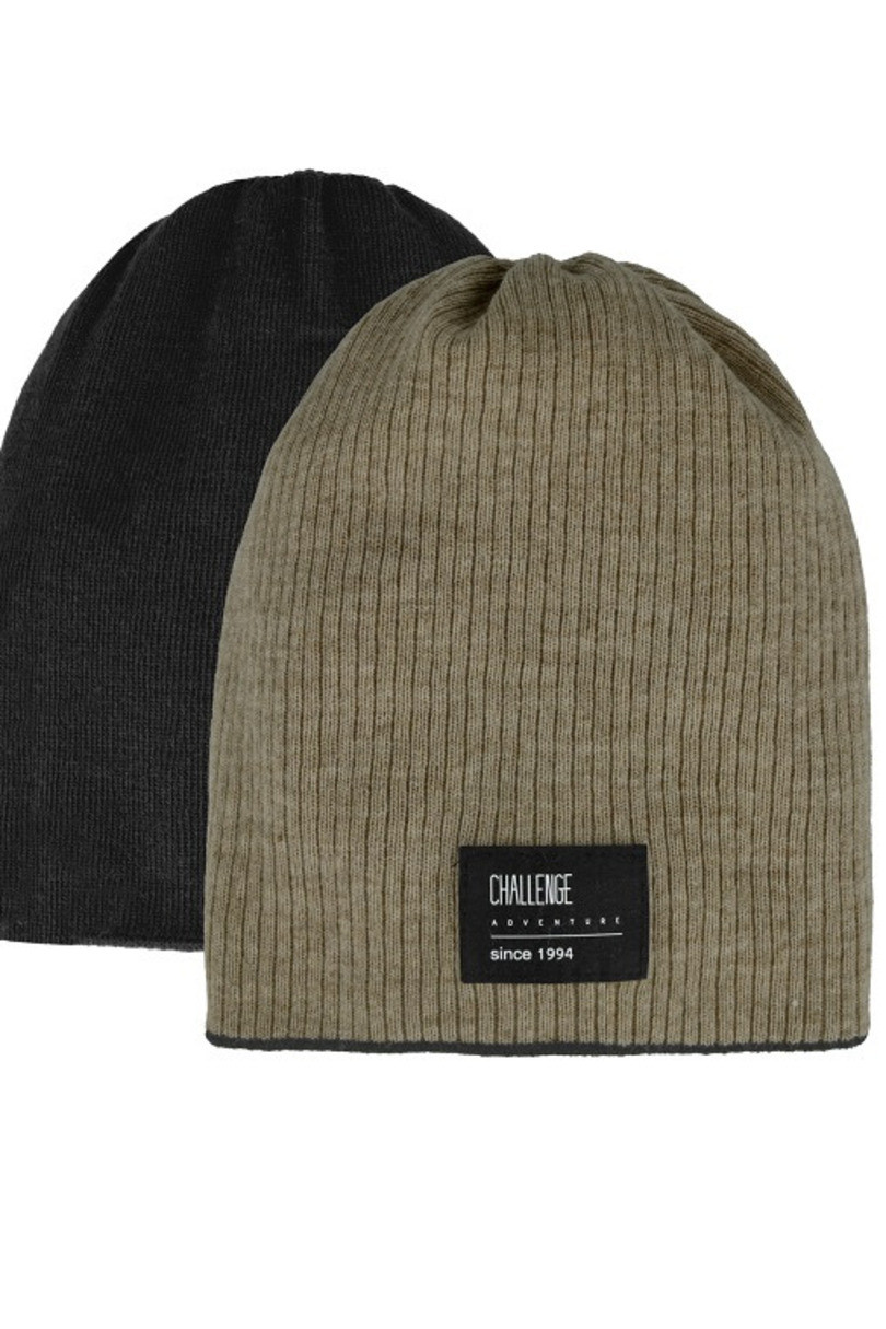 Dvoustranný chlapecký klobouk. Mírně prodloužený model, jedna strana s nášivkou, druhá hladká. .