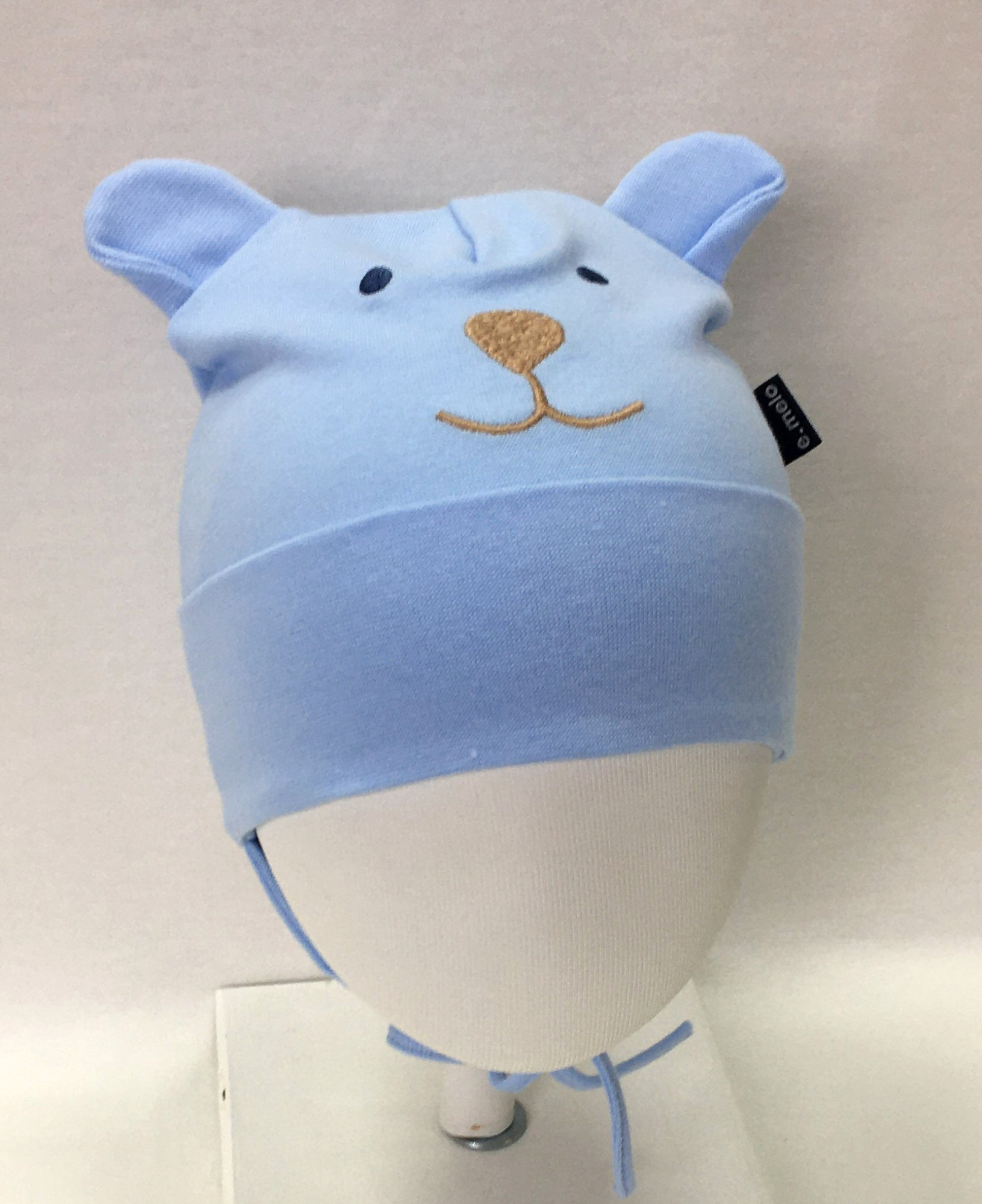 Chlapecká čepice z vysoce kvalitní bavlny - zavazuje se u krku - s ušima - zdobená obrázkem medvídka Dostupné barvy: béžová, písková, modrá, džínová - náhodný výběr. Složení: 98 % bavlna, 2 % elastan