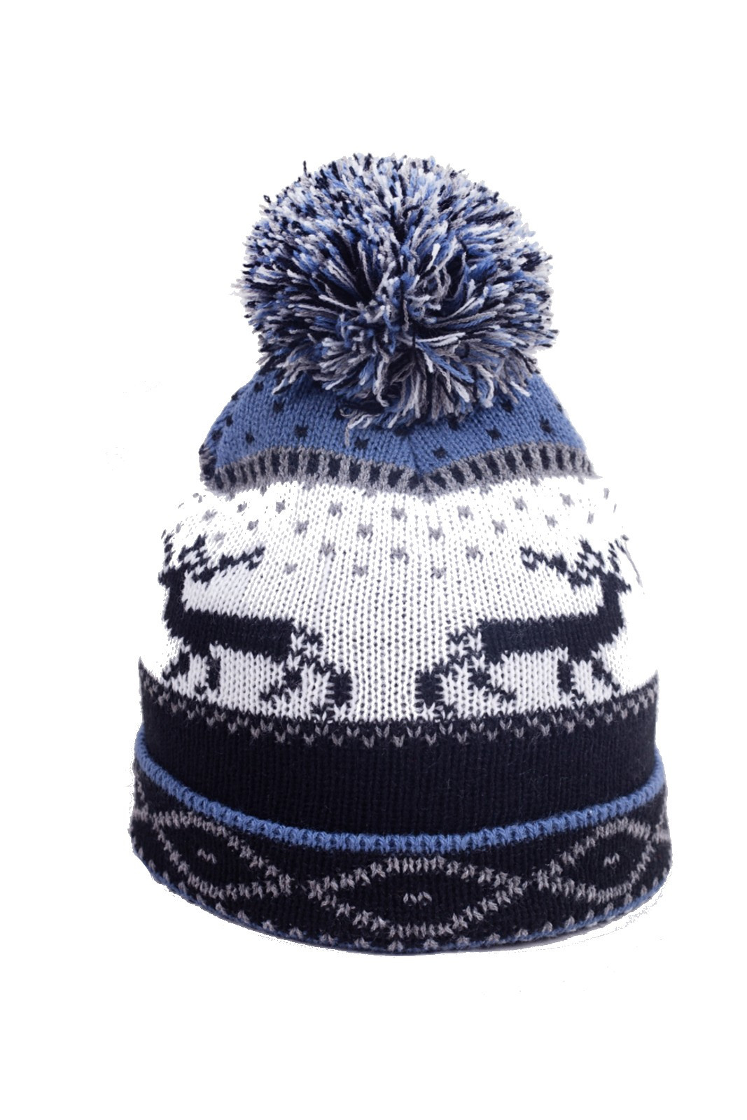Chlapecká čepice s bambulí - zdobené zimním vzorem -dvouvrstvé, s bavlněnou podšívkou Složení: 95% akryl, 5% polyester; podšívka 100% bavlna