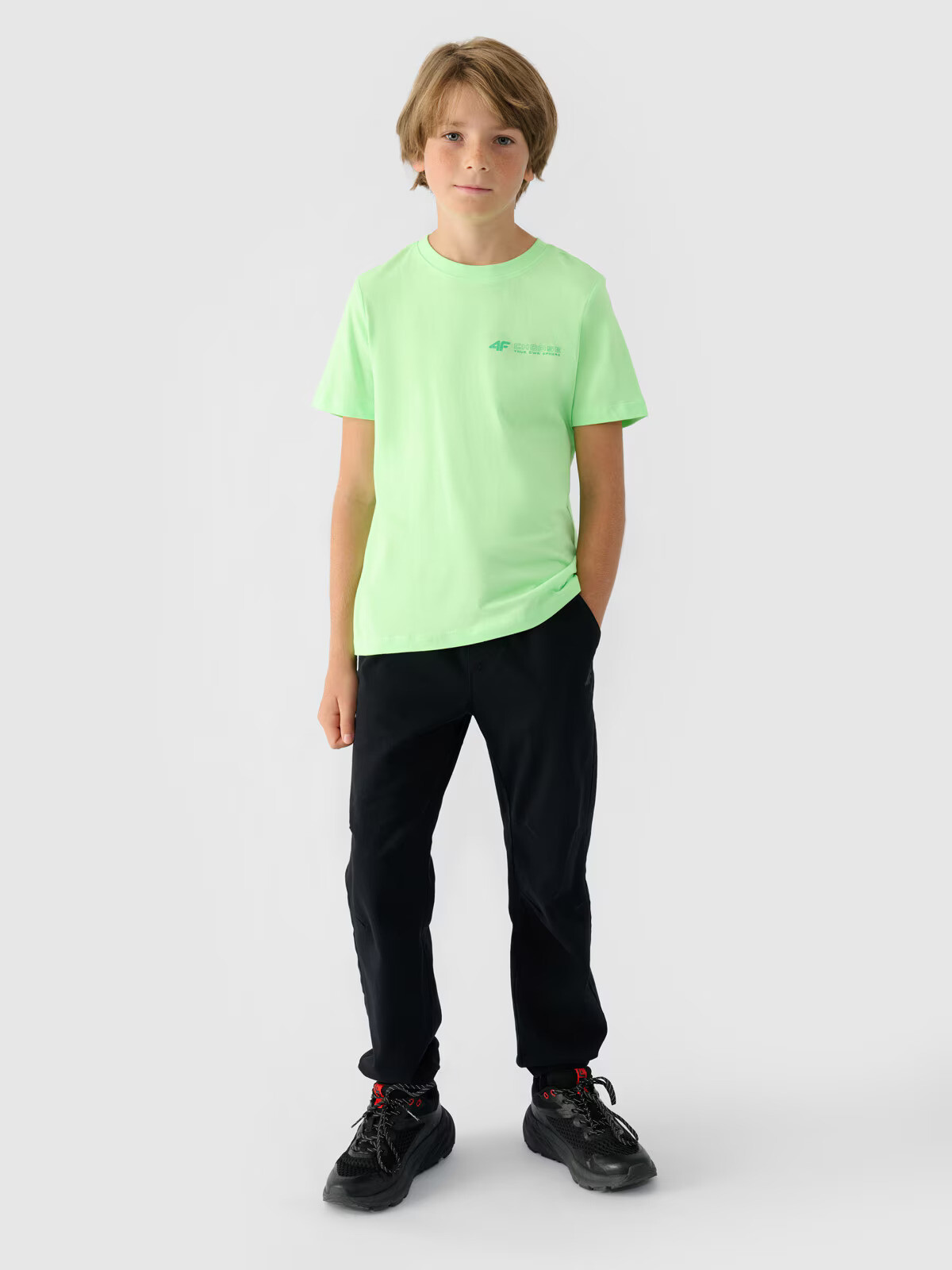 Chlapecké kalhoty casual typu jogger jsou ideálním prvkem jak pro casualové, tak sportovní každodenní stylizace. Mají střih regular, který se pohodlně přizpůsobí postavě a zúžené nohavice zakončené elastickou gumou. Dětské kalhoty casual mají střední gramáž materiálu 220 gsm, díky čemuž jsou měkké a prodyšnější. Chlapecké kalhoty casual jsou vyrobeny z 98% bavlny, díky čemuž jsou měkké, odolné a příjemné na dotek. Díky přídavku elastanu (2%) jsou elastické a pohodlně sedí na postavě. Kalhoty jsou bez podšívky, díky čemuž jsou lehčí a vhodné pro teplejší dny. Na bocích jsou 2 otevřené kapsy. Elastický pás s vnějším nastavením na šňůrky. Profilovaná oblast kolen.