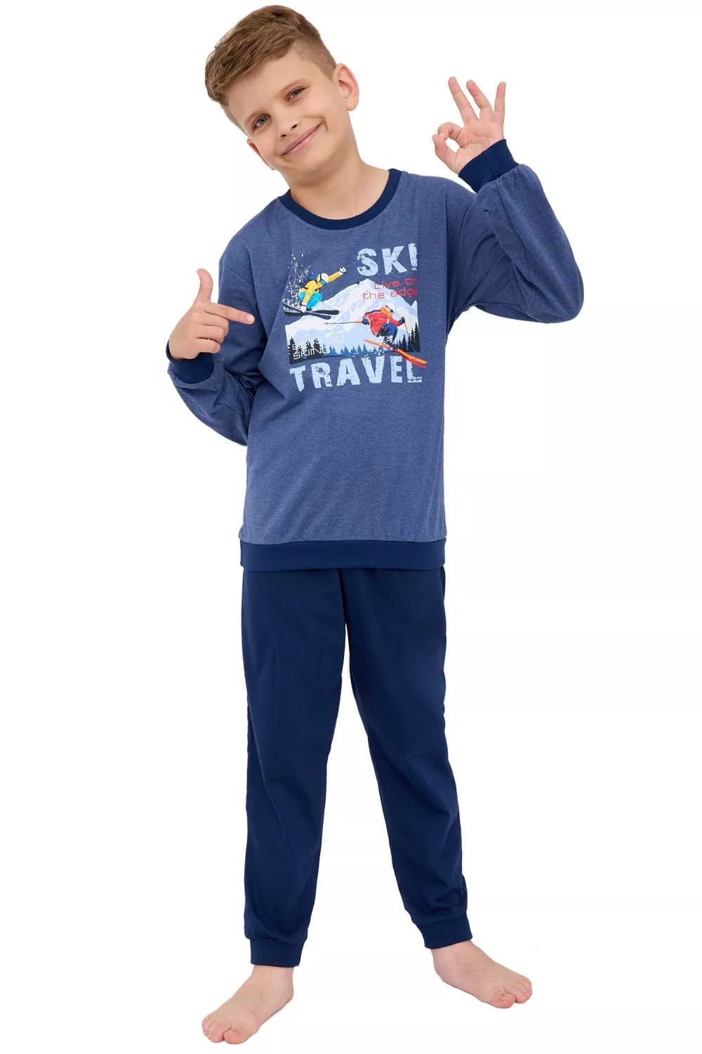 Chlapecké pyžamo 267/158 Ski CORNETTE - z vysoce jakostní bavlny - světle modré tričko s dlouhými rukávy - na přední straně zdobené potiskem - pohodlné dlouhé modré kalhotyMateriálové složení: 80% bavlna + 20% polyester Velikosti pro muže S M L XL XXL 3XL 4XL 5XL Obvod hrudníku (cm) 92-96cm 96-100cm 100-104cm 104-108cm 108-112cm 112-116cm 116-122cm 122-128cm Obvod pasu (cm) 82-86cm 86-90cm 90-94cm 94-98cm 98-102cm 102-106cm 106-112cm 112-118cm Výška (cm) 164-170cm 170-176cm 176-182cm 182-188cm 188-194cm 188-194cm 188-194cm 188-194cm Velikosti pro ženy S M L XL XXL 3XL 4XL 5XL Obvod hrudníku (cm) 88-92cm 92-96cm 96-100cm 100-104cm 104-108cm 108-112cm 112-118cm 118-124cm Obvod pasu (cm) 72-76cm 76-80cm 80-84cm 84-88cm 88-92cm 92-96cm 96-102cm 102-108cm Obvod boků (cm) 92-96cm 96-100cm 100-104cm 104-108cm 108-112cm 112-116cm 116-122cm 122-128cm Výška (cm) 158-164cm 164-170cm 164-170cm 170-176cm 176-182cm 176-182cm 176-182cm 176-182cm Dětské velikosti (roky) 2-3 3-4 5-6 7-8 9-10 11-12 13-14 Obvod hrudníku (cm) 50-54cm 54-58cm 58-62cm 62-66cm 66-72cm 72-80cm 80-88cm Obvod pasu (cm) 48-52cm 50-54cm 52-56cm 54-58cm 56-62cm 60-68cm 64-72cm Výška (cm) 86-92cm 98-104cm 110-116cm 122-128cm 134-140cm 146-152cm 158-164cm