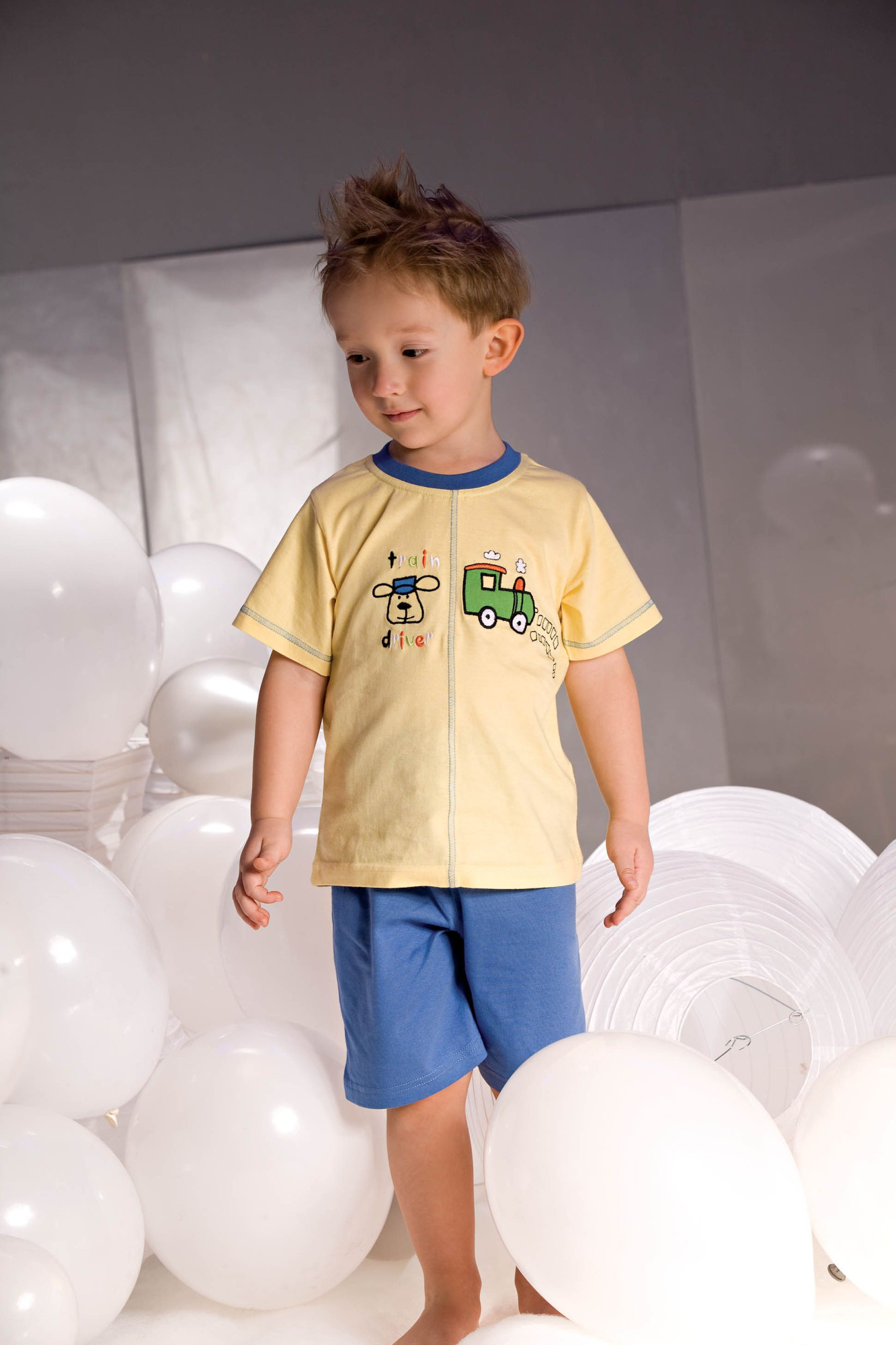 Módní a veselé dvoubarevné chlapecké pyžamo sestávající z trička s krátkým rukávem a krátkých šortek. Na horním dílu ve světle zelené barvě je vyobrazen pes a lokomotiva. Šortky jsou jednobarevné šedé.Složení: 100% bavlna. Velikost140-146152-158 Délka trička57,5 cm61cm Šířka košile2x43cm2x45cm Délka rukávu od krku31cm36cm Délka košile od podpaží35cm38,5cm Šířka v pase (volná / mírně natažená)2x33cm / 2x41cm2x35cm / 2x44cm Délka šortek44cm45cm Délka nohavice od rozkroku18cm18cm Šířka nohavice v dolní části2x22cm2x22cm