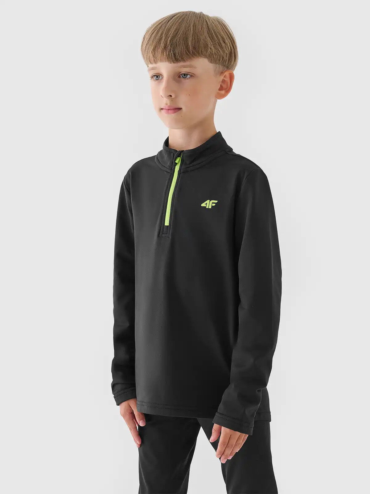 Chlapecké termotričko - účinná izolace pro všechny aktivity a roční období. Rozmanitost a charakteristika zimních sportů vyžadovala řešení, která by fungovala v proměnlivých povětrnostních podmínkách a poskytovala plnou volnost pohybu. Díky tomu poskytuje česané prádlo vysoké tepelně izolační vlastnosti a tepelný komfort jak při dlouhých hodinách na sjezdovce, tak při oblíbených každodenních aktivitách v chladných dnech. Má střih regular, který se pohodlně přizpůsobí postavě a standardní délku sahající k linii boků. Vyrobené z dvouvrstvé pleteniny s hřejivou, česanou vnitřní stranou a hladkou vnější stranou. Je příjemné ve styku s pokožkou a měkké na dotek. Nejlépe funguje jako izolační, druhá vrstva oblečení (second layer), kterou lze nosit přímo např. přes termotričko nebo pod bundou, zejména v chladných a studených dnech. Teplé termoprádlo je vyrobeno ze syntetického materiálu, který zajišťuje odolnost a snadno se udržuje. Díky přídavku elastanu (10%) je materiál elastický a pohodlně sedí na postavě. Chlapecké termotričko s technologií 4FWarm zajišťuje tepelný komfort a podporuje udržování stálé tělesné teploty. Výstřih se stojáčkem se zapínáním na zip s blokádou. Raglánové rukávy neomezují v pohybu.