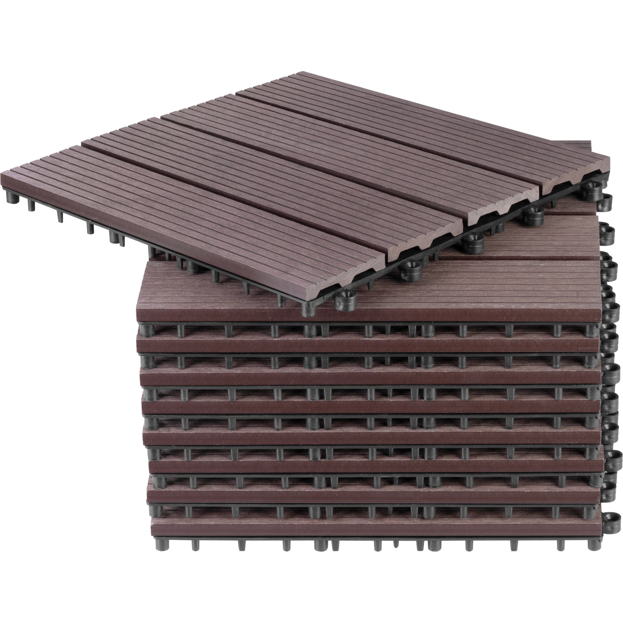Plastové terasové desky Strend Pro – sada 9 ks, 31 × 31 × 2 cm, WPC efekt dřevaSada 9 plastových terasových desek Strend Pro s moderním WPC efektem dřeva je praktickým a estetickým řešením pro úpravu teras, balkonů, zahradních chodníků nebo okolí bazénu. Kombinace hnědé a černé barvy vytváří atraktivní vzhled imitující přírodní dřevěný obklad a hodí se k moderní i klasické architektuře.Každá deska má rozměr 31 × 31 × 2 cm a díky zaklikávacímu systému (click systém) je montáž velmi rychlá, jednoduchá a nevyžaduje žádné nářadí. Desky jsou vyrobeny z odolného plastu (PP), který je nenasákavý, protiskluzový a odolný vůči UV záření i povětrnostním podmínkám – vhodný pro celoroční použití.Klíčové vlastnosti:• Balení obsahuje: 9 ks desek• Rozměry jedné desky: 31 × 31 × 2 cm• Materiál: odolný plast (PP) s efektem dřeva (WPC)• Barva: kombinace hnědé a šedé• Montáž: jednoduchý click systém bez použití nářadí• Vlastnosti: odolné vůči vlhkosti, UV záření, mrazu i opotřebení• Protiskluzový povrch pro bezpečný pohyb• Vhodné pro: terasy, balkony, chodníky, okolí bazénů a zahradní plochyStrend Pro – elegantní a bezúdržbový povrch, který nainstalujete snadno a bez starostí.