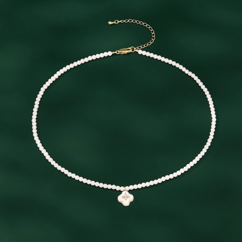 Tento něžný náhrdelník s drobnými perličkami a decentním přívěskem ve tvaru kvítku z perleti je zosobněním jemnosti a vytříbeného vkusu. Elegantní linie perliček doplňuje minimalistické zapínání s nastavitelným prodloužením pro pohodlné nošení. Uprostřed pak září perleťový čtyřlístek se zirkonovým středem, který přitahuje pohled jako klenot přímo z ranní rosy.Perličky navléknuté do pravidelné linie vytvářejí křehký, ale působivý dojem – ideální pro ženy, které touží po šperku, jenž podtrhne jejich přirozenou eleganci. Zlaté detaily v kombinaci s perletí působí jemně a luxusně zároveň. Tento šperk se stane Vaším spolehlivým společníkem nejen při slavnostních příležitostech, ale i při běžných dnech, kdy chcete zazářit.Díky jemnému provedení skvěle ladí s večerními šaty, ale i s bílou košilí nebo černým svetříkem. Je univerzální, přesto jedinečný. Vytváří jemnou tečku za každým outfitem, který má styl. 💡 Tip: Kombinujte tento náhrdelník s perlovými náušnicemi nebo minimalistickým prstýnkem ve zlaté barvě. Krásně vynikne na odhaleném dekoltu – ideálně v šatech nebo halence s výstřihem do V. Pro slavnostní vzhled doporučujeme rudou rtěnku a vyčesaný účes – květinový přívěsek tak získá zaslouženou pozornost.