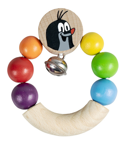 Chrastítko s krtečkem je vhodné i pro ty nejmenší díky nízké hmotnosti. Rolnička jemně cinká. Výrobek je připevněn na papírové kartě. Výrobek splňuje požadavky EU na bezpečnost hraček. Vhodný pro děti od 6 měsíců.