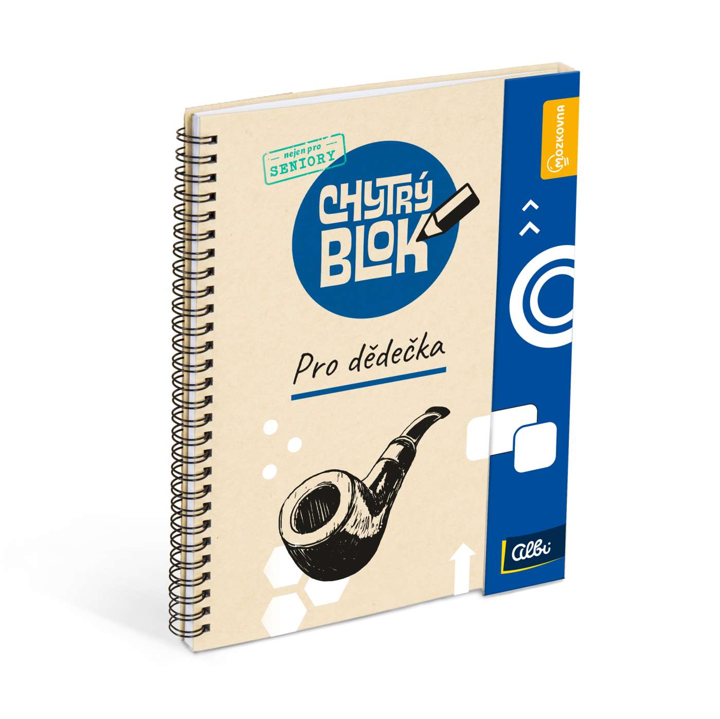 Blok s kroužkovou vazbou plný luštění a kvízů určený pro starší spoluobčany. Má velká písmena, ideální jako dárek.