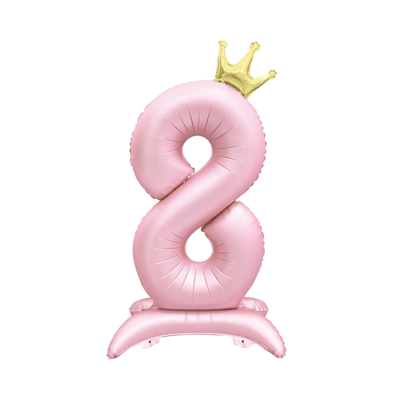 Stojící fóliový balónek ve tvaru světle růžové číslice 8 s korunkou je ideální jako efektní výzdoba narozeninové párty nebo oslavy významného jubilea. Jednotlivé číslicové balónky můžete kombinovat pro vytvoření potřebného čísla. Výška: 82 cm Materiál: fólie se saténovou úpravou Balení obsahuje: 1 ks balónku a papírové brčko pro snadné nafouknutí Balónky je možné nafukovat pouze vzduchem.