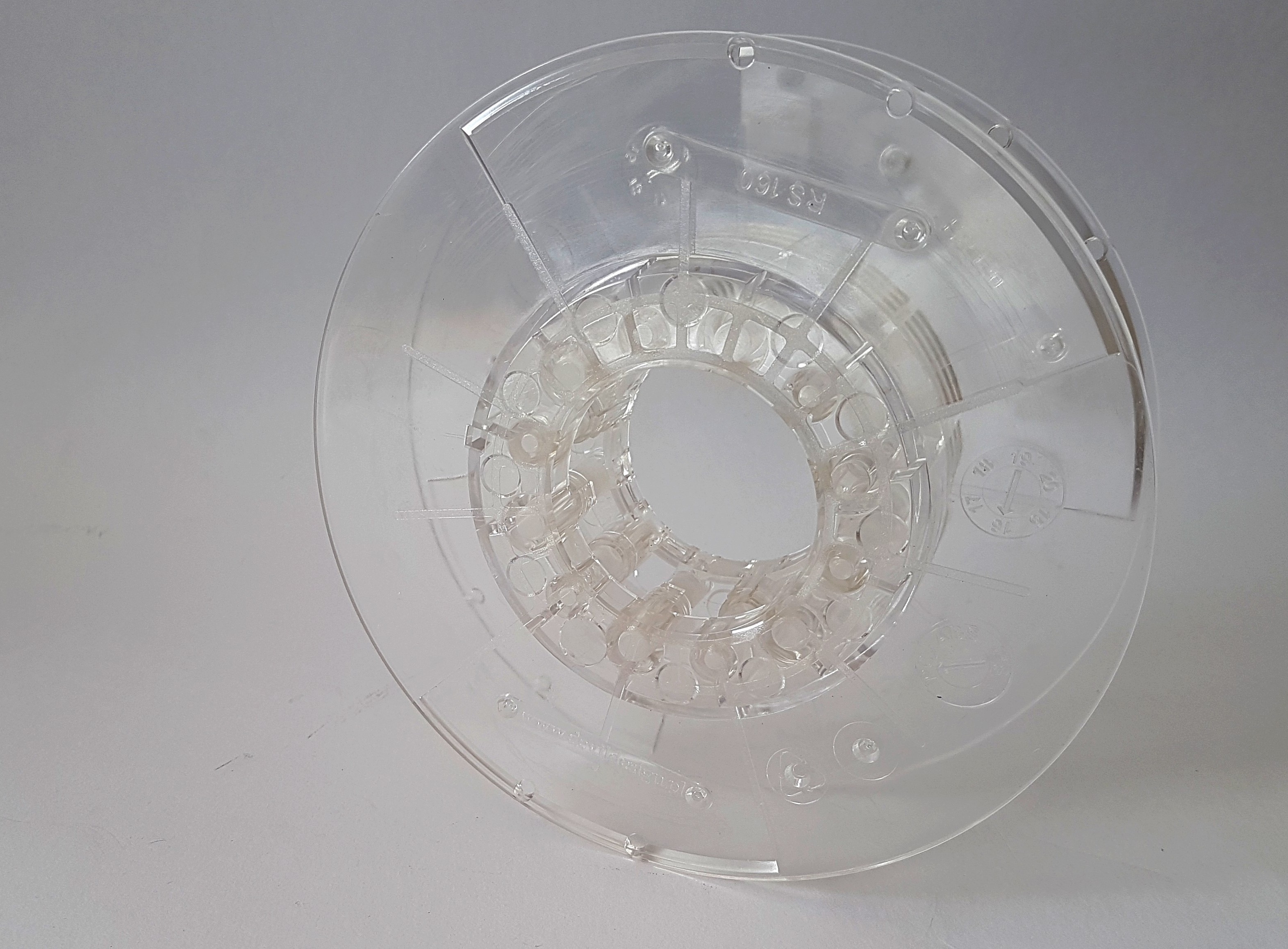 Malá náhradní cívka na 330g 3D filamentu, vhodná např. na převinutí špatně navinuté cívky. Prázdná transparentní cívka vhodná pro většinu 3d tiskáren typu FDM (FFF). Vnitřní průměr: 5,2 cm Vnější průměr: 16 cm Nejedná se o nový výrobek.