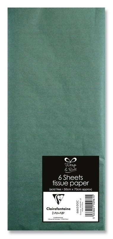 CLAIREFONTAINE Hedvábný papír tm. zelený, balení obsahuje: 6 ks, rozměr: 50x70 cm , vyrobeno ve Francii.Stylový balicí papír Clairefontaine s originálním francouzským designem. Perfektní pro každou příležitost.