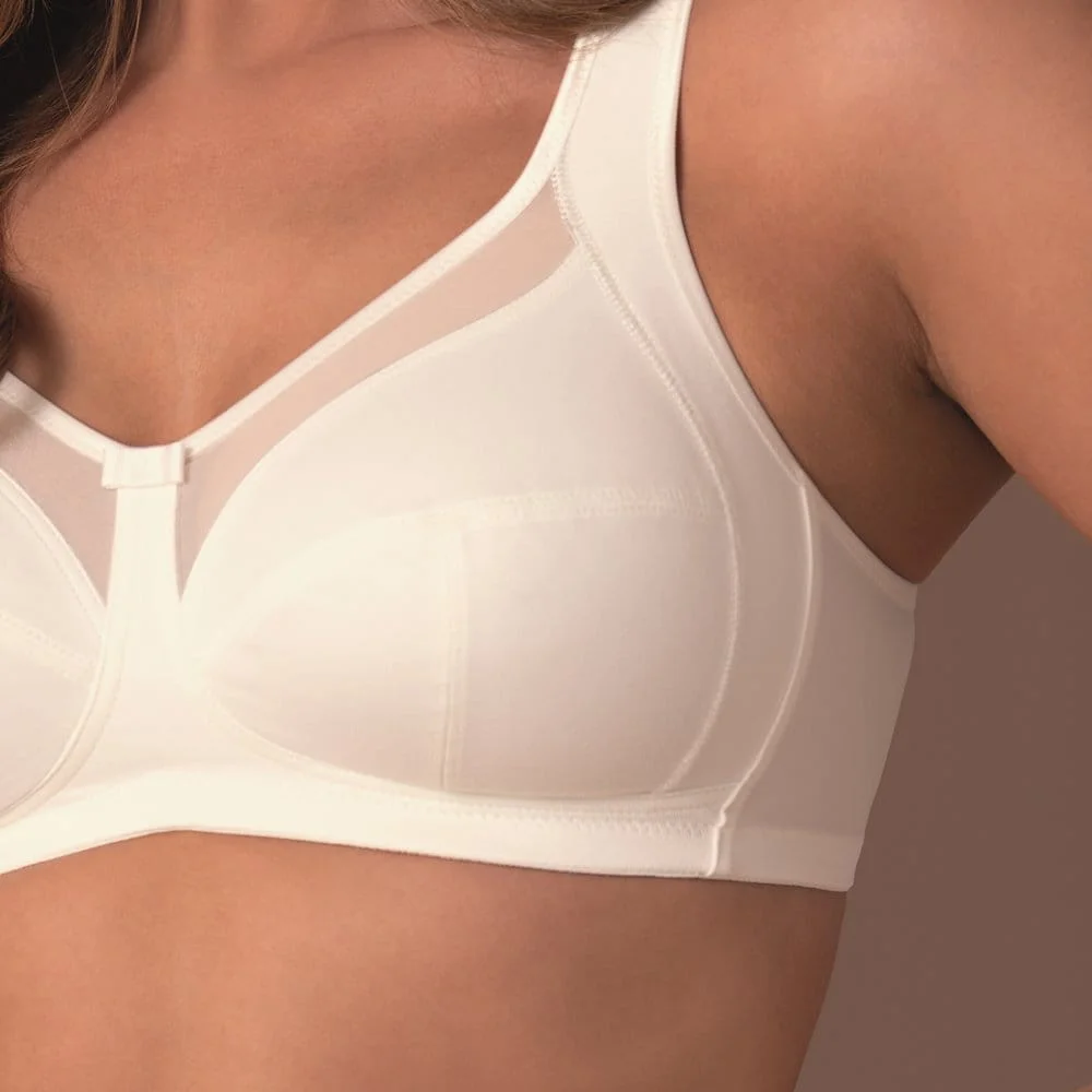 Podprsenky -  má obzvláště stabilní, formující a podpůrné účinky, - pevné boční vsadky v košíčcích opticky zmenšují poprsí, - komfortní ramínka jsou v oblasti ramen navíc pohodlně vypodložená a s přibývající velikostí se ještě rozšiřují, - průramky jsou obroubeny hebkou lemovkou, - ramínka nastavitelná ploché spony na ramínkách neobsahují žádný nikl, - s přibývajícími velikostmi se ještě rozšiřují zadní díl nastavitelný do 3 poloh,  - ramínka jsou v ramenních partiích vybavena pohodlným polstrováním. Materiálové složení: 85% polyamid, 15% elastan.
