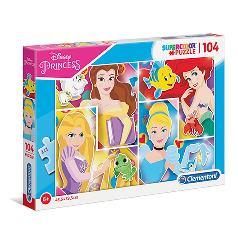 Puzzle Disney princezny 104 dílků Puzzle: Princess Popis a parametry Věk:od 6 let Rozměr složeného puzzle cca:48,5 x 33,5 cm Materiál:Papír Rozměry krabice (balení):38 x 29 x 6 cm Přibližná velikost dílku:4 cm Počet dílků:104 Dětské puzzle ze série SuperColor Collection s motivem oblíbených princezen. Puzzle SuperColor Collection - edice navržená speciálně pro děti, pomáhá jim rozvíjet manuální zručnost a schopnost pozorování. Kvalita materiálů a exkluzivní technika tisku zaručují trvale krásné, živé a zářivé barvy. Doporučeno pro děti od 6 let.