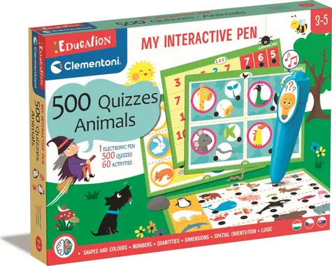 Clementoni Vzdělávací hra:Moje interaktivní pero 500 kvízů- Zvířata / Počet hráčů: 2-4 / Délka hry: 20 minut / od 3 let