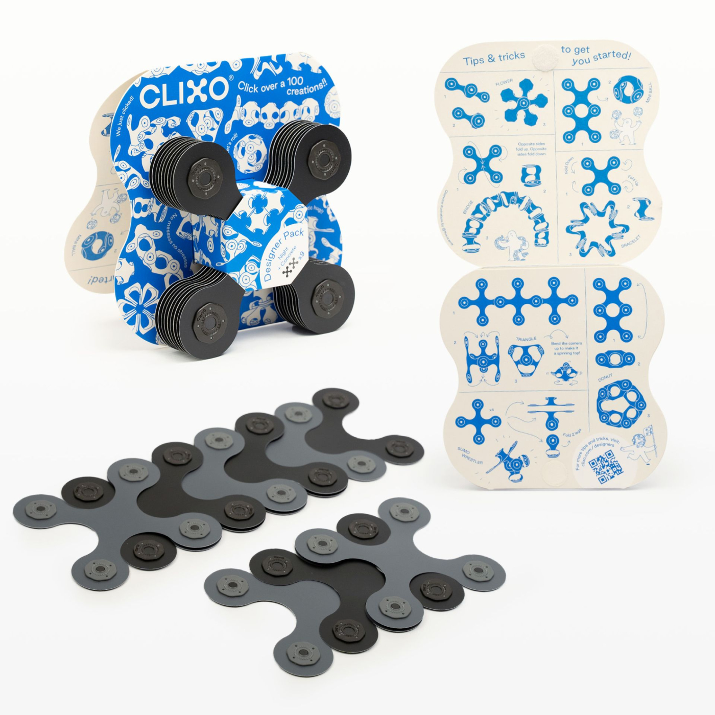 CLIXO Designer Black & Grey - 9 kusů je flexibilní, velmi lehká, magnetická stavebnice, v černo a šedé kombinaci, která je inspirována filozofií trvale udržitelného rozvoje a je vyrobena z recyklovaného syntetického papíru. Zároveň je to skvělá Montessori hračka. Tato stavebnice je založena na principu spojování různých tvarů a dílků pomocí magnetů k sobě. Sada Designer umožňuje postavit až 100 různých staveb a stavět takové kombinace, jako je například most, had, housenka, větrník, náramek, miska nebo kutálející se míček. Uvedené výtvory však mohou být zajímavé nejenom pro děti, ale díky moderním barvám mohou být i ozdobou na pracovním stole. Sada je díky zvoleným barvám vhodná i jako antistresová, či relaxační sada i pro dospělé. Inspirace pro různé stavby naleznete uvnitř papírového balení. V tomto zázračném balení kapesní velikosti se skrývá svět zábavných objevů! Tato sada se skvěle hodí i jako doplněk k jakékoliv jiné sadě. Prodává se ve dvou barevných variantách. Charakteristika sady: • Počet tvarů: 1 (tvar připomínající čtyřlístek) • Počet kusů: 9 (ve 2 barvách) • Sada zabírá velmi málo místa a váží pouze 70 gramů, takže kromě klasické domácí zábavy se skvěle hodí i na cesty • Rozměr balení: 13 x 13 x 2,8 cm • Váha balení: 70 gramů • Rozměry prvků: cca 10 x 10 cm • Doporučený věk: 4-99 Hlavní vlastnosti stavebnice CLIXO: • Vysoce kvalitní, ekologické dílky pro dlouhé hodiny hraní • Vysoká flexibilita prvků • Voděodolné díly díky použití kvalitního syntetického papíru, které umožňují hraní i ve vodě • Velmi silné magnety (prvky přitahující se z velké vzdálenosti i několika cm) • Lehké a kompaktní, ideální pro tvoření doma i na cestách • Nespočet výtvorů z hrstky dílků, jednoduše poskládejte a sbalte • Bezplatný přístup na YouTube k dalším stavbám, tipům a trikům • Brožura s kreativními návrhy pro vytváření různých konstrukcí v každé sadě • Přizpůsobitelný hrací systém podporuje kreativní myšlení a sebevyjádření • Umožňuje zábavu, soustředění a úlevu od stresu pro děti a dospělé s autismem, ADHD a úzkostí • Multisenzorický hrací systém umožňuje dětem rozvíjet prostorové vnímání, jemné motorické a smyslové dovednosti a podporuje výuku STEAM doma i ve třídě • Snadné čištění (stačí otřít vlhkým hadříkem) • Získané prestižní ocenění v kategorie KREATIVNÍ HRAČKA ROKU 2023 pro sadu Mars Rovers Podpořte fantazii svých dětí s flexibilní stavebnicí s magnety od společnosti CLIXO! Hledáte zábavnou a poutavou dětskou hračku, která podporuje kreativitu a učení? Nehledejte nic jiného než tuto ohebnou stavebnici s magnety zabudovanými v důmyslném pouzdře, které umožňuje rotační pohyb o 360° a zároveň fixuje ve 24 polohách. Tento unikátní patent zajištuje stabilitu všech výtvorů. Stavebnice je navržena tak, aby rozvíjela dětskou kreativitu, prostorové vnímání a jemné motorické dovednosti. Jednotlivé sady jsou vynikající pomůcky pro výuku STEAM doma i ve třídě. Každý ohebný díl ve tvaru čtyřlístku vytváří 2D i 3D konstrukce, které se připevní na jakýkoli magnetický povrch. Jejich jedinečný vícesměrný tvar umožňuje dětem ohýbat, kroutit a spojovat dílky libovolným způsobem, což podporuje nápaditou hru. Magnety CLIXO jsou pro děti skvělé stavební hračky pro zábavu i na cestách! Díky kompaktním rozměrům a lehké konstrukci se jednotlivé sady snadno přenáší. Jejich odolný materiál zajišťuje, že dílky vydrží i tu nejaktivnější hru, ať už uvnitř nebo venku. Nedají se ani roztrhnout, jen přestřihnout nůžkami. Každý díl je vyroben z patentovaného, recyklovatelného syntetického papíru, (nevadí mu ani voda), magnetů a polymerů bezpečných pro děti, které neobsahují BPA, ftaláty a jsou netoxické. Díky recyklovatelným materiálům a odolné konstrukci jsou pro děti zcela bezpečné. Výrobky CLIXO jsou vyrobeny s důrazem na každý i ten nejmenší detail. Díky estetickému balení jsou jednotlivé CLIXO sady ideální i jako dárek. Velmi vhodné jsou také do mateřských škol a vzdělávacích zařízení při kreativních aktivitách s dětmi.