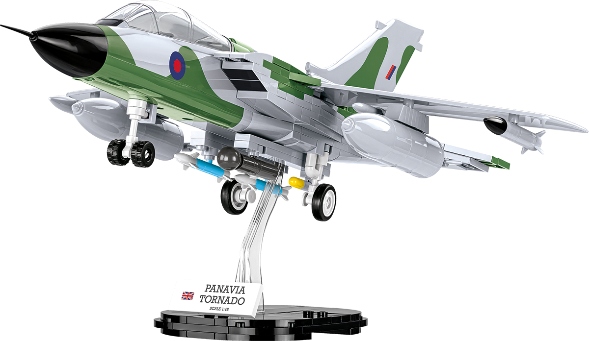 Postavte si model Panavia Tornado GR.1. Jedná se o víceúčelové bojové letouny s měnitelnou šípovitostí křídel, používané Royal Air Force (RAF) od 80. let 20. století do roku 2019, kdy byly vyřazeny z provozu. Panavia Tornado byl dvoumotorový proudový bojový letoun vytvořený konsorciem Panavia Aircraft GmbH, které zahrnovalo Německo, Itálii a Velkou Británii. Ve výzbroji RAF byly tři hlavní varianty letounů Tornado: GR.1, GR.4 a GR.4A. Model GR.1 byl první verzí uvedenou do provozu v 80. letech 20. století Tornáda se používala jako pozemní podpůrná letadla, stíhačky a pro útoky na vzdušné cíle. Balení obsahuje 520 kostek stavebnice a 2 figurky vojáků.