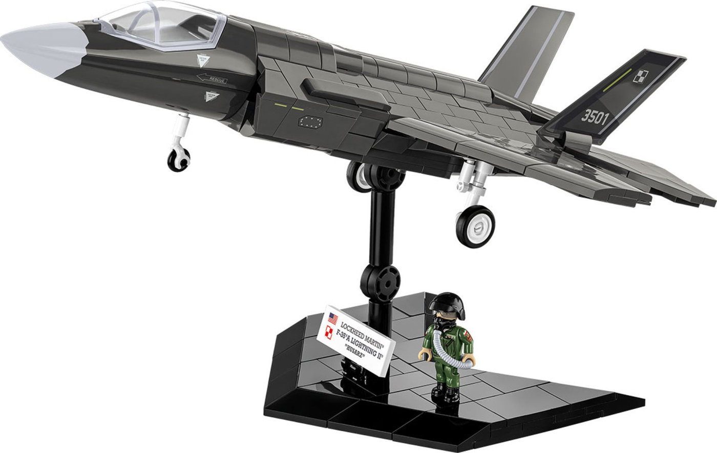 Postavte si model F-35A "Husarz" od společnosti COBI – moderní stíhačku polského letectva v měřítku 1:48 F-35A Lightning II "Husarz" je unikátní stavebnice od společnosti COBI, která vám umožní postavit model stíhačky páté generace – jednoho z opravdových es v nebi, které se brzy připojí k polskému letectvu. Moderní technologie a historie v jednom modelu F-35A je americký jednomístný víceúčelový stíhač nejnovější generace, vyvinutý v rámci programu Joint Strike Fighter. Navržený konsorciem společností Lockheed Martin, Northrop Grumman a BAE Systems, vyniká svými inovativními technologickými řešeními a schopností operovat ve všech bojových podmínkách. V roce 2024 polské ministerstvo národní obrany oficiálně pojmenovalo náš F-35A „Husarz“, což je odkaz na hrdou rytířskou tradici. Do roku 2030 bude do Polska dodáno celkem 32 letounů, které nahradí stárnoucí MiGy-29 a Su-22. F-35 „Husarz“ se stane klíčovým prvkem obrany proti hrozbě, kterou představují ruské Su-35 a Su-57. Co odlišuje F-35A „Husarz“? Tento futuristický letoun nabízí nejen technologii stealth – neviditelnost pro radar – ale také působivý výkon díky svému výkonnému motoru Pratt & Whitney F135-PW-100 s přídavným spalováním. F-35 bez námahy dosahuje nadzvukové rychlosti a přitom je obtížné jej odhalit.Jeho bojové schopnosti zahrnují nejen vzdušný boj, ale také bombardování, průzkum a elektronické rušení – to vše v rámci jedné mise. Jedná se o skutečný víceúčelový stíhač budoucnosti. Objevte klíčové vlastnosti stavebnice F-35A "Husarz" od COBI: • Oficiálně licencováno společností Lockheed Martin – model byl vytvořen v úzké spolupráci s renomovaným výrobcem letadel, společností Lockheed Martin. To zaručuje nejvyšší kvalitu a přesnost reprodukce – pro sběratele modelů, modeláře kostek i nadšence do vojenského letectví. • Měřítko 1:48 – umožňuje realistickou reprodukci velikosti a proporcí letadla, díky čemuž je stavebnice ideální pro hraní. Zároveň se model perfektně hodí do větších dioramat a sbírek a skvěle vypadá i na policích a ve vitrínách. • 605 kostek – stavebnice se skládá z více než šesti set vysoce kvalitních dílků, navržených s mimořádnou pozorností k detailu. Kostky do sebe perfektně zapadají, což zajišťují obohacující stavbu a pevnou konstrukci hotového modelu. • Realistické detaily – model obsahuje řadu pohyblivých prvků, jako je otevírací kokpit, směrovky a výškovky a funkční pumovnice. Gumové pneumatiky na podvozku mu dodávají ještě realističtější vzhled a umožňují bezpečný pohyb modelu po rovném povrchu. • Podkřídlová výzbroj – sada obsahuje realisticky reprodukované rakety a bomby, které lze snadno vkládat a vyjímat z pumovnice, a prezentovat tak letadlo v bojové i neutrální konfiguraci. Tento detail nejen zvyšuje vizuální atraktivitu modelu, ale také umožňuje jeho úpravy. • Figurka pilota – součástí sady je figurka pilota oblečená v detailní letecké uniformě. Figurka je vybavena helmou a kyslíkovou maskou, což jí umožňuje sedět v kokpitu nebo stát samostatně jako výstavní exponát vedle letadla. • Potisky místo samolepek – veškeré označení, emblémy a grafické detaily jsou trvale natištěny bez použití samolepek. To nejen zvyšuje odolnost modelu proti oděru, ale také zvyšuje jeho estetický vzhled – model vždy vypadá úhledně a profesionálně. • Exkluzivní stojan a plaketa – sada obsahuje elegantní stojan s informační plaketou s názvem sady. Celý model vypadá působivě na poličce, ve vitríně nebo mezi dalšími modely z kolekce. • Snadná montáž – sada obsahuje jasné, barevné a podrobné pokyny, které vás provedou procesem stavby intuitivním a srozumitelným způsobem. Díky tomu je tato sada výzvou pro mladší stavitele i obohacujícím projektem pro dospělé fanoušky stavění z kostek. Model F-35A "Hussar" je skvělou volbou pro každého stavitele, který miluje stavění moderních modelů vojenských letadel z kostek – ať už pro zábavu, nebo k vystavení vlastní sbírky. Díky vysoké kvalitě zpracování a detailnímu designu bude sada F-35A "Hussar" poutavým doplňkem každé sbírky. Nečekejte – postavte si model F-35A Lightning II "Husarz" a vzneste se! • 605 vysoce kvalitních prvků • Vyrobeno v EU společností s více než 35letou tradicí • Kostky splňují bezpečnostní standardy výrobků pro děti • Plně kompatibilní s jinými značkami stavebnic • Kostky s potisky se nepoškrábou, nerozmazávají a nevyblednou během hry ani vlivem teploty • 100% potisky, žádné samolepky • Jasný a intuitivní návod založený na ilustracích a podrobných pokynech • 1 figurka