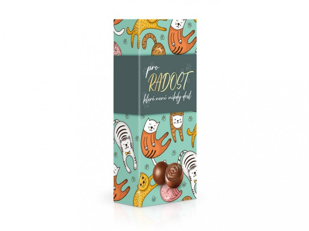 Bonboniéra obsahuje šest čokoládových plněných pralinek s krémovou náplní v dárkové krabičce. Plněné čokoládové pralinky v dárkové krabičce. Bonbonierka obsahuje 2 ks pralinek s kakaovou náplní, 2 ks pralinek s kávovou a 2 ks s lískooříškovou náplní. Náplň (60%): cukr, rostlinný tuk (palmový řepkový v různém poměru), odtučněný kakaový prášek 12%, sušená syrovátka, laktóza, odtučněné sušené mléko, emulgátor: sójový lecitin, vanilin, přírodní vanilkové aroma, káva 7% v kávové náplni, lískové oříšky 8% v lískooříškové náplni Skořápka (40%): cukr, plnotučné mléko 16,5%, kakaová hmota, kakaové máslo, sušená syrovátka, emulgátor: sójový lecitin, přírodní vanilkové aroma. Může obsahovat stopy ořechů a gluten. Informace pro alergiky: Může obsahovat stopy pšeničného glutenu, vajec, arašídů a dalších ořechů. Skladujte na suchém místě, chraňte před teplem. S kakaovou náplní:
