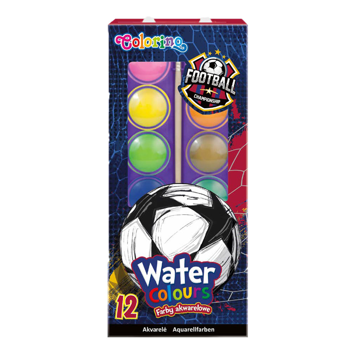 ChatGPT řekl: Představte si, že se ocitnete přímo na trávníku stadionů v Barceloně, Madridu nebo v srdci Anglie. Tato hravá kolekce s fotbalovými motivy je navržena pro všechny, kdo žijí sportem a fotbalem i během školní výuky. Vodové barvy s vysokým obsahem pigmentu vám zaručí syté a výrazné odstíny. V balení najdete 12 netoxických barev, které jsou ideální pro školy, školky i domácí malování. Součástí sady je kulatý štětec s přírodním chlupem. Baleno v papírové krabičce.