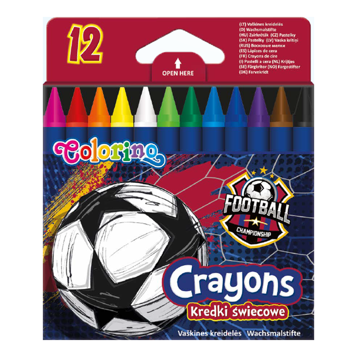 Představte si, že místo školní lavice stojíte na zeleném trávníku stadionu v Barceloně, Madridu či Anglii. Tato fotbalová kolekce potěší každého, komu by bez míče byla ve škole dlouhá chvíle. A teď si k tomu přidejte 12 nádherně sytých voskovek, které promění každý papír v galerii sportovní vášně. Voskovky mají kulatý tvar, pohodlně padnou do ruky a díky vysokému obsahu pigmentu zanechávají hladkou, rovnoměrnou stopu bez hrudek. Jsou netoxické, extra měkké a snadno se ořezávají. Ideální pro malé fotbalisty i velké snílky, kteří chtějí barvami vyjádřit svou lásku ke hře. Baleno v papírové krabičce.